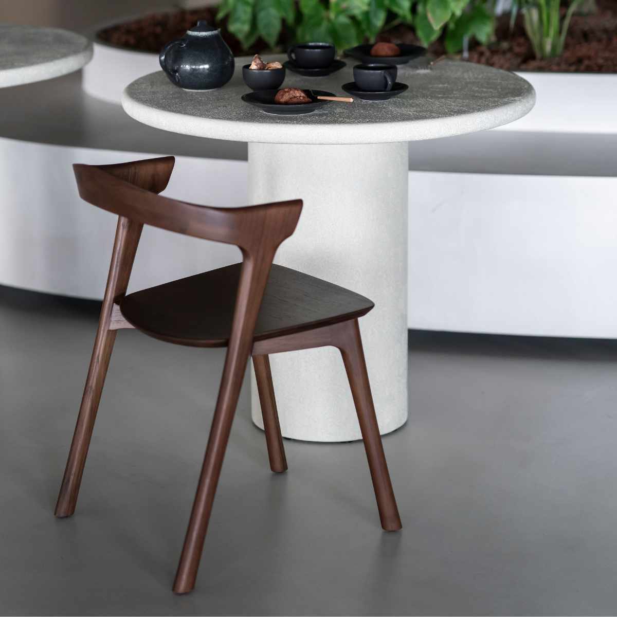 Reminiscent of a goat's curved horns, the Bok collection combines sculptural elegance and contemporary crafting into a graceful and airy form. Over the years, the Bok dining chair has become one of Ethnicraft's most recognizable designs.