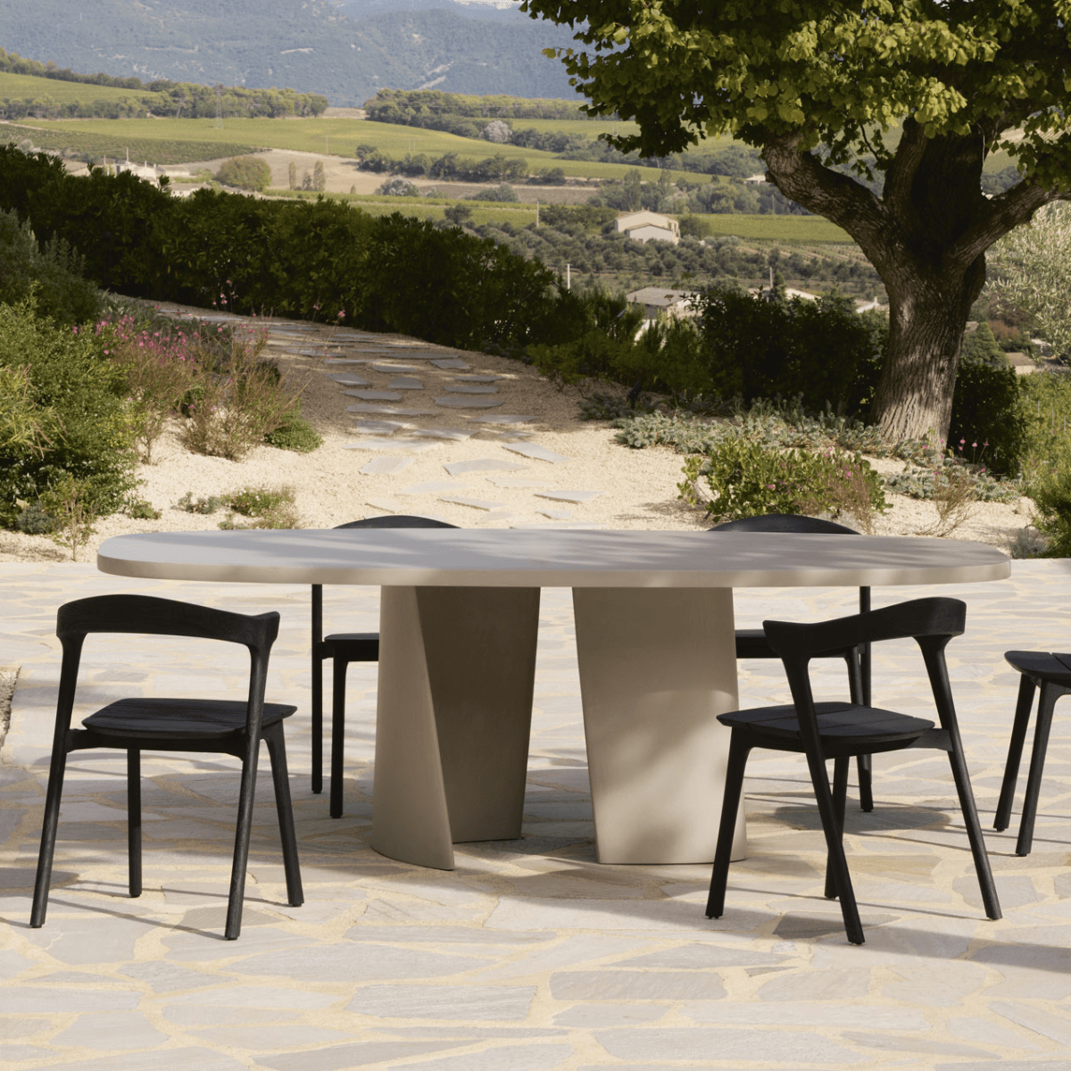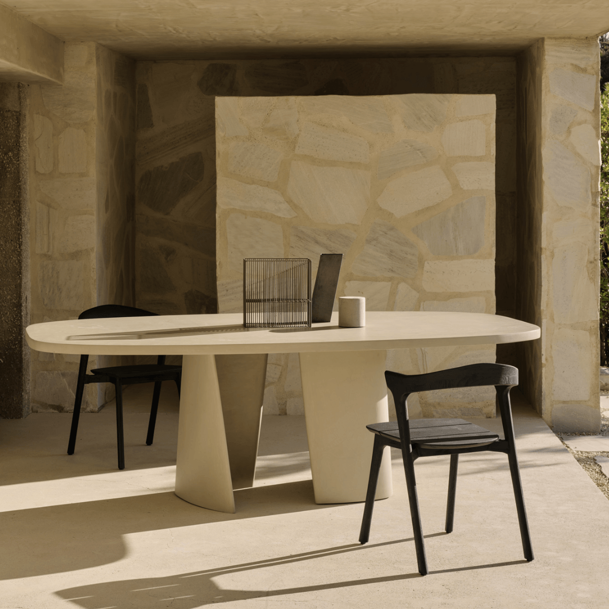 The Canyon masterfully captures the essence of fluid movement into a solid form. Mirroring the natural flow and balance of a canyon, this dining table features legs positioned to interact dynamically, creating a corresponding yet intriguing balance. The negative space between each leg emphasizes this flowing motion, while their torsion suggests a mutual dependence, symbolizing a state of poise. The central space adds a touch of airiness and lightness, ensuring ample space and comfort for those gathered around.
