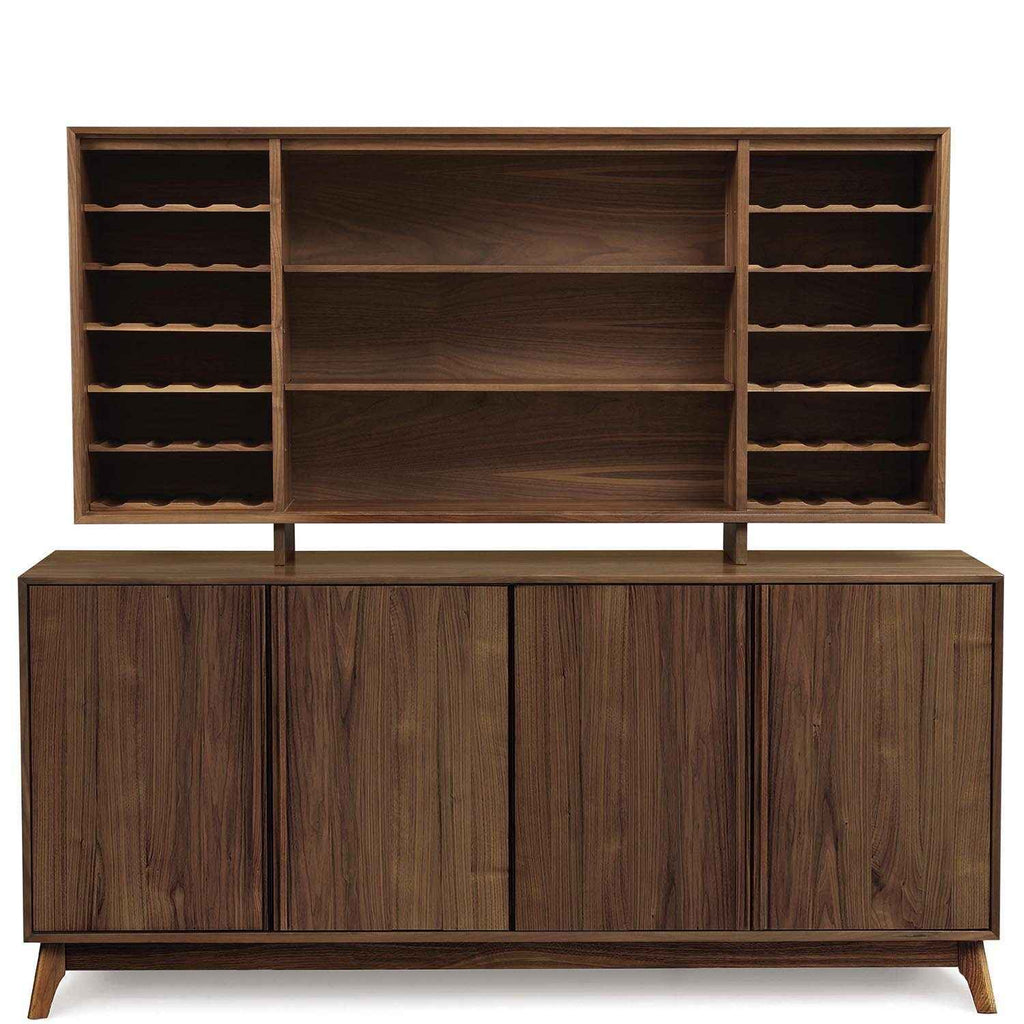 Hutches are configured to rest atop any Copeland double width buffet and feature reversible shelves for either wine bottle or flat surface storage.