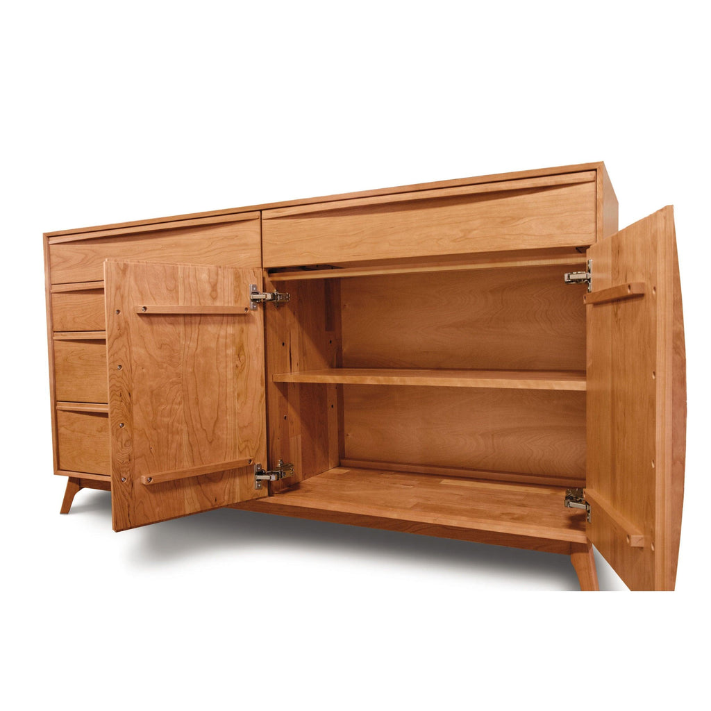 Copeland’s natural hardwood furniture is manufactured in Bradford, Vermont. Combining traditional cabinet-making techniques with cutting-edge computer technology, the Copeland team hand-selects maple, cherry, or walnut lumber to build each piece. These natural hardwoods vary in color and may have swirls, knots, and burls that add a touch of warmth and individuality to your home decor. Every piece is topped with a clear, silky smooth finish that’s tough enough to withstand the wear and tear of daily family activities for generations to come.