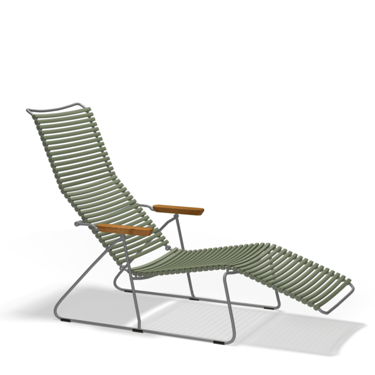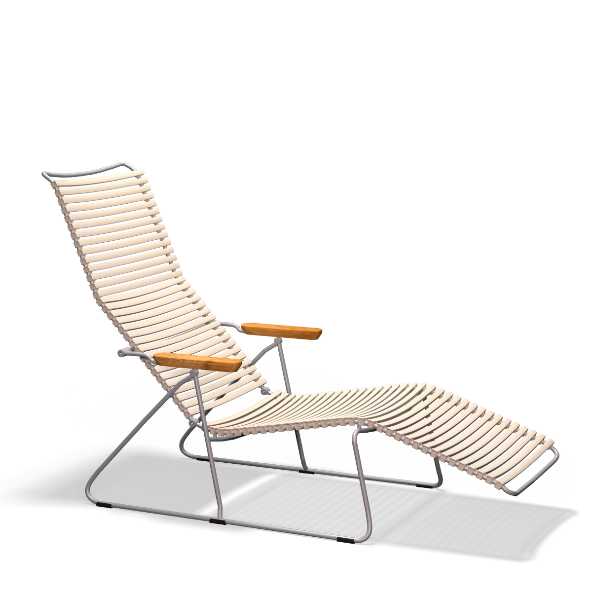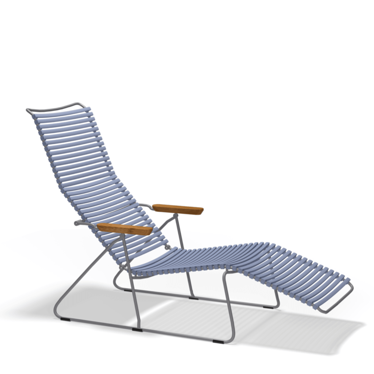 The Click Sunlounger features an adjustable backrest that's shaped to perfectly fit your body in its different positions. The curves make the Sunlounger very sculptural. Sit down, find your position and enjoy. The lamellas are composed with exactly the right resilience to provide excellent cushion-free comfort. The lamellas can be CLICKed on and off - which makes it possible to modify the look of the chair simply by changing - or mixing the different lamella colors.