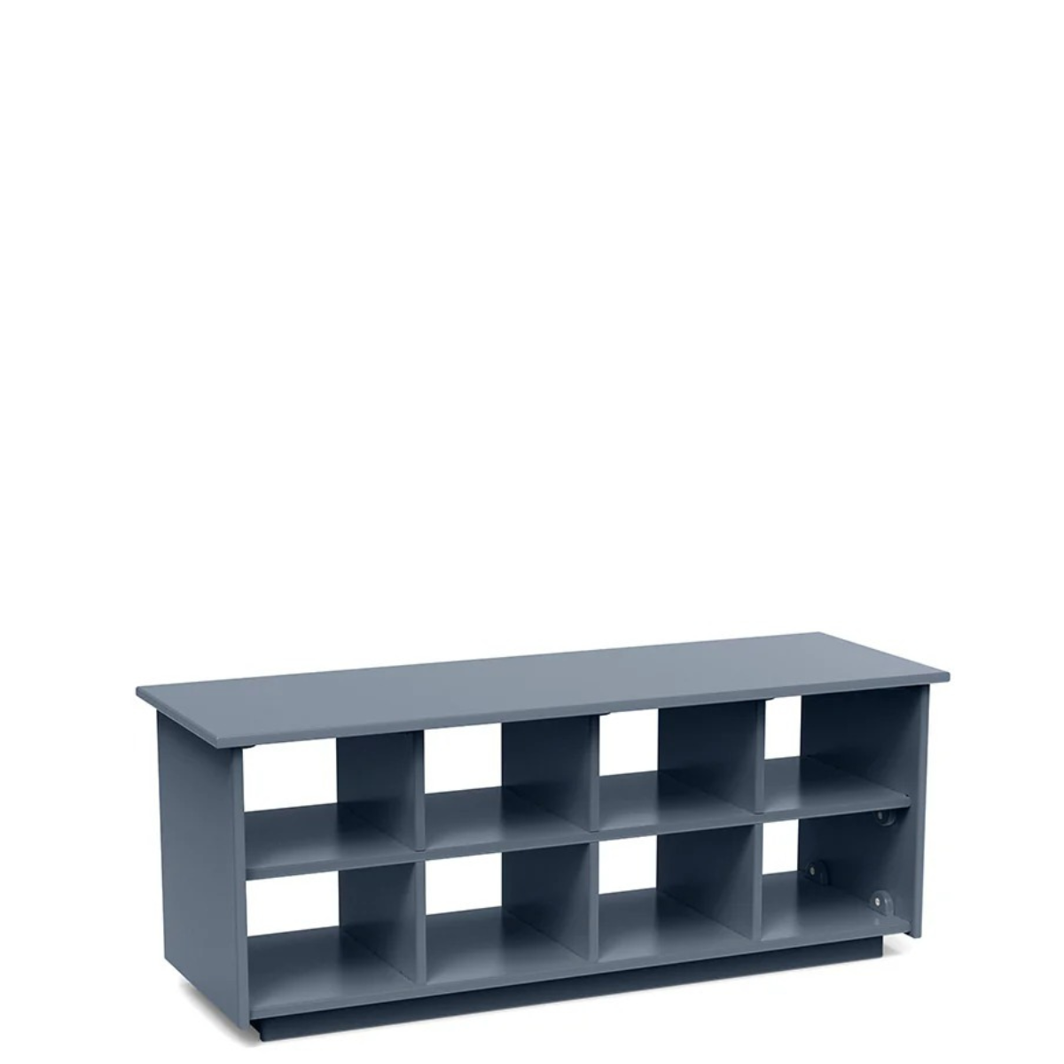 The Loll Cubby Bench 44 is a piece that bridges the gap between outdoor and indoor furniture. This sustainably made and ultra-durable piece can be used as a practical solution to the shoe pile outside your front door or in your mudroom. Sitting at 17” in height, The Loll Cubby Bench 44” also works as a seat while you put your shoes on to embrace the outdoors.