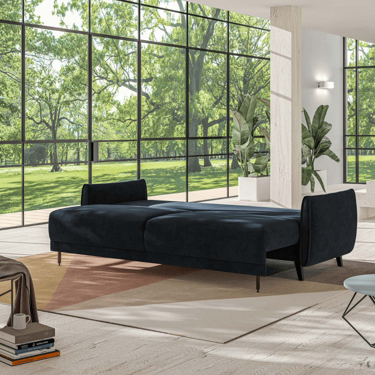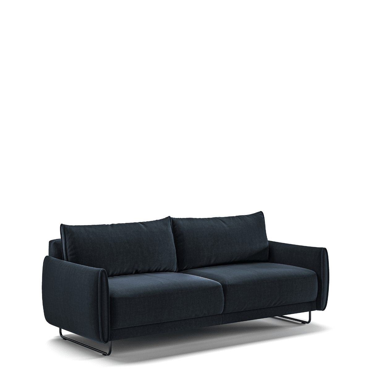 Made with narrow rooms in mind, only opening 18 inches into the room. Welting of the arms and the ability to sleep arm to arm; the Dolphin has comfort. A finished storage box under the seat offers additional storage. High legs take this design off the floor and give you a new heightened experience.