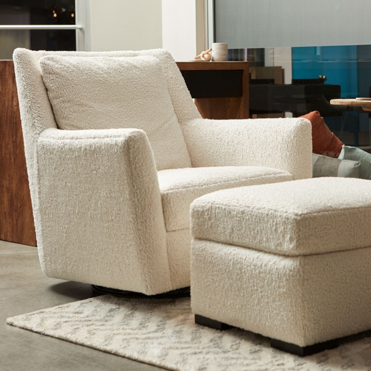 To glide or swivel? That is the conundrum at the heart of the Egg chair. Equal parts cozy and stylish, this chair beckons all who come near, with its inviting embrace. In the end, the real question may be whether to get up or sit a little longer.
