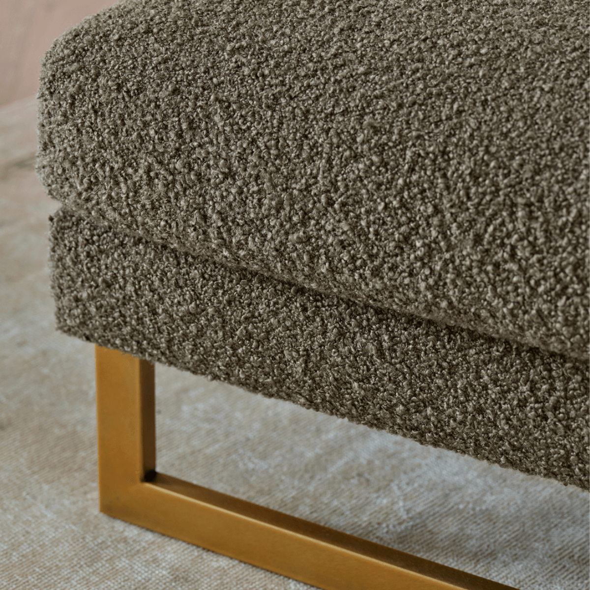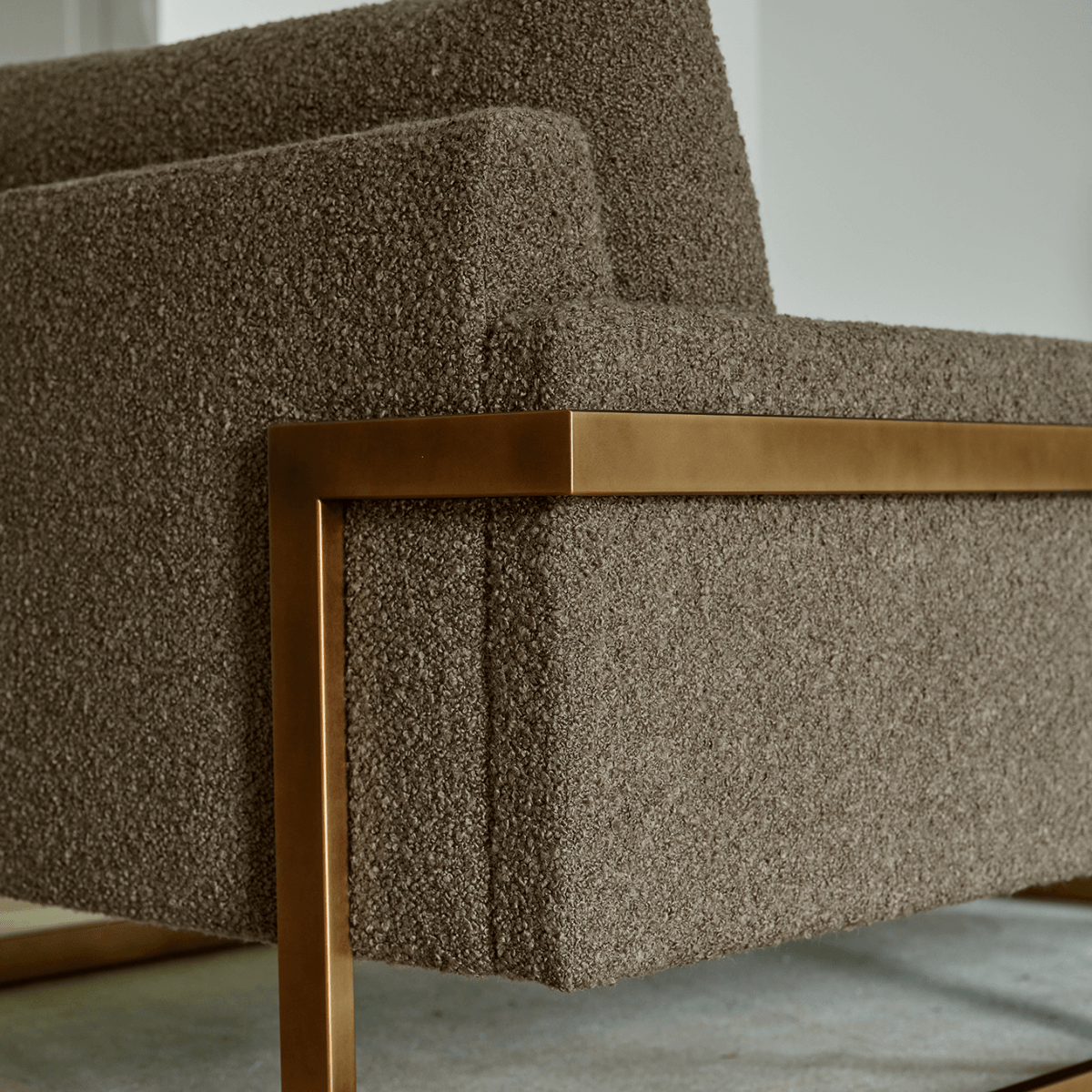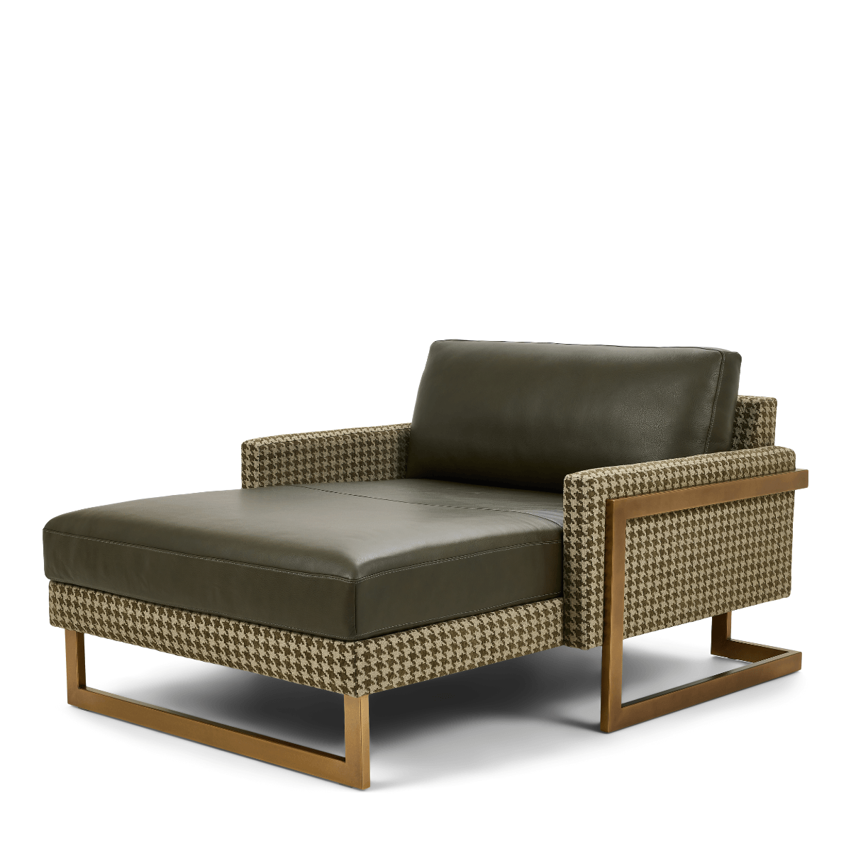 American Leather's Emery Chaise sits between hand fabricated custom plated decorative armatures – the perfect architectural jewelry for this neatly balanced piece.
