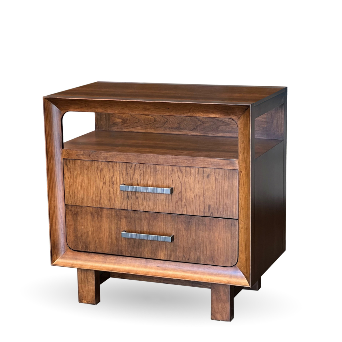 Our top-selling Emmitt Lounge Chair, the Emmitt Settee combines upholstery, solid wood, and hand-hammered tapered solid steel together into a highly functional, exceedingly comfortable, and ultimately, beautifully modern silhouette. The fully welded frame utilizes a hand-forged take on modern design with a double tapered leg, while the one-piece solid 1” thick maple seat frame supports leather upholstered cushions. It was nominated for the prestigious American Society of Furniture Designers Pinnacle Award.