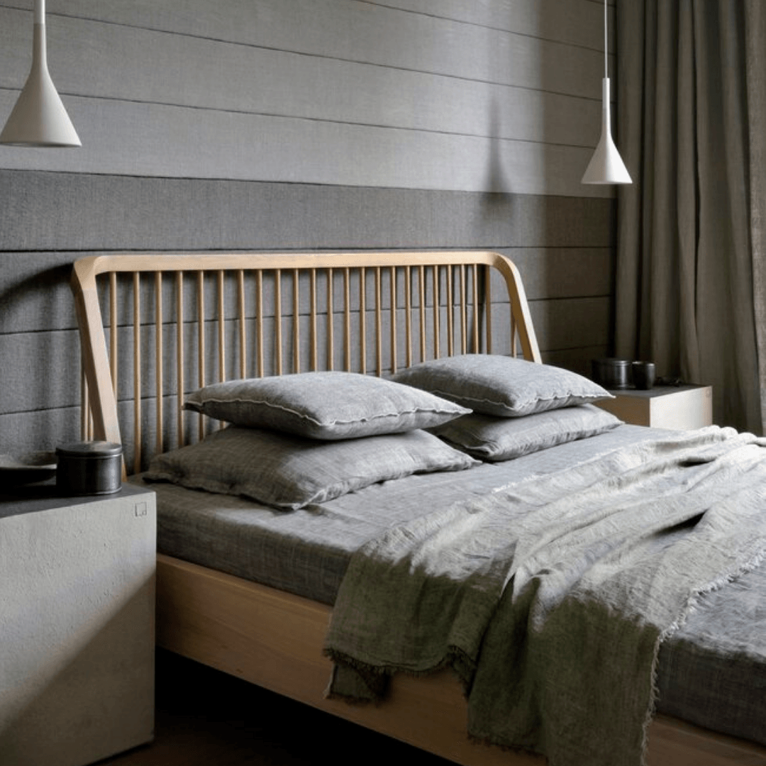 Ethnicraft values zero waste production methods and works hard to diminish their carbon footprint. Waste like leftover logs, wood, and sawdust are all re-purposed. The sawdust from logs is either used as fuel for the drying ovens or compressed as a base for pellets. All the leftovers from cutting planks to size are recycled and used as base material or box joints for panels. Consciously-chosen fibers like wool, cotton, and Belgian linen are used, while only the best weaving yarns are sourced from Belgium, France, Italy, Peru, and Pakistan.