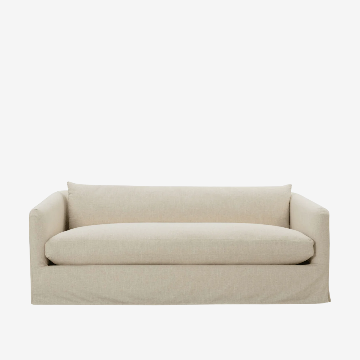 A minimal design with one back cushion, bench seat, and track arms. Whether your style is modern or traditional, the Florence Slipcover Sofa is sure to look good in your space.