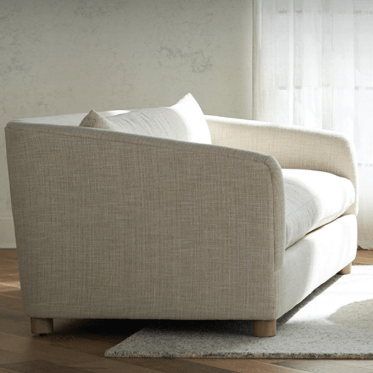 - Shown in fabric Grade CC: BF100-43 - order swatch here with washed oak legs