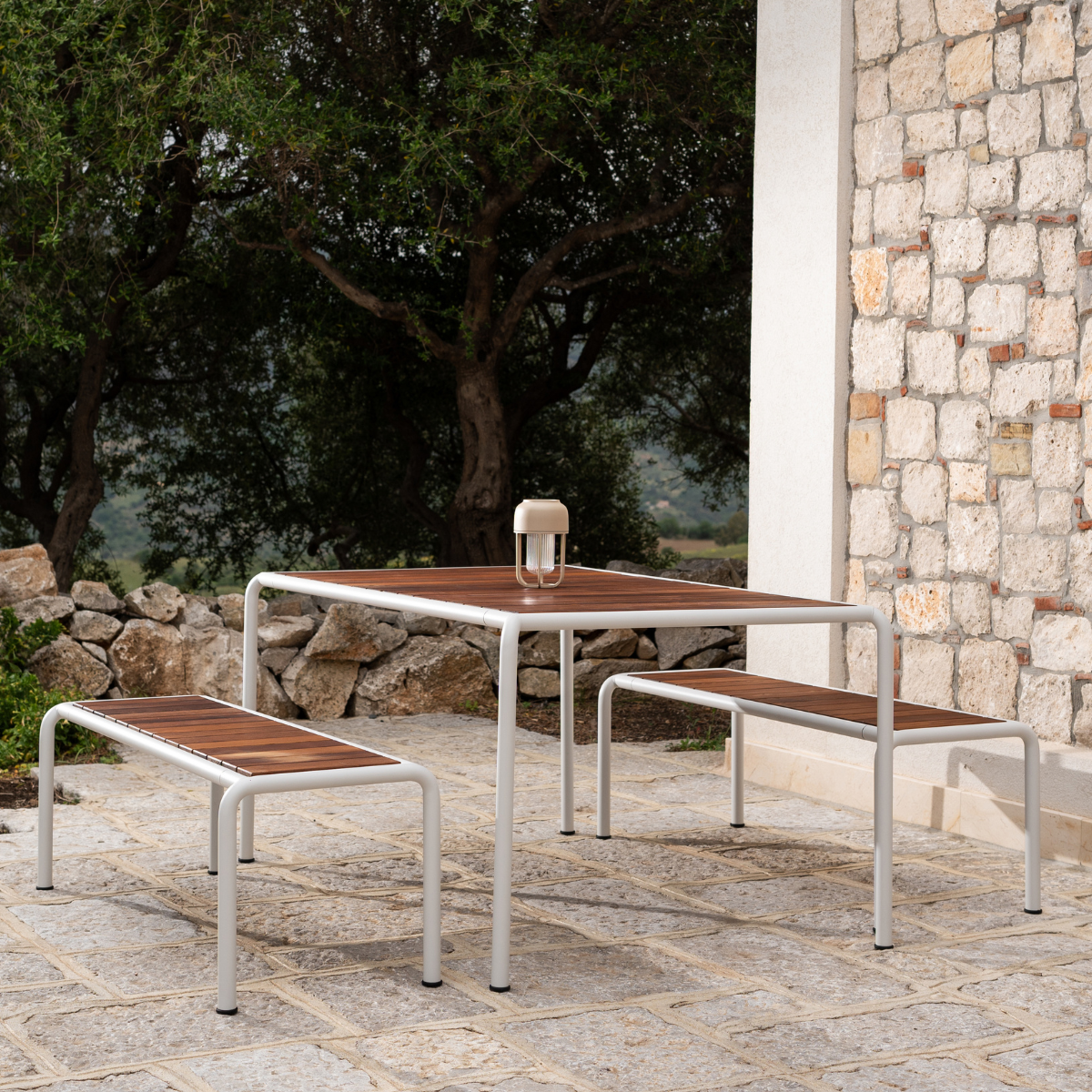 The Four Outdoor Dining table will elevate your outdoor space with its simple silhouette. Choose from two color combinations and three sizes!