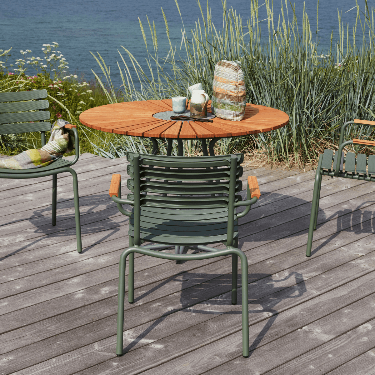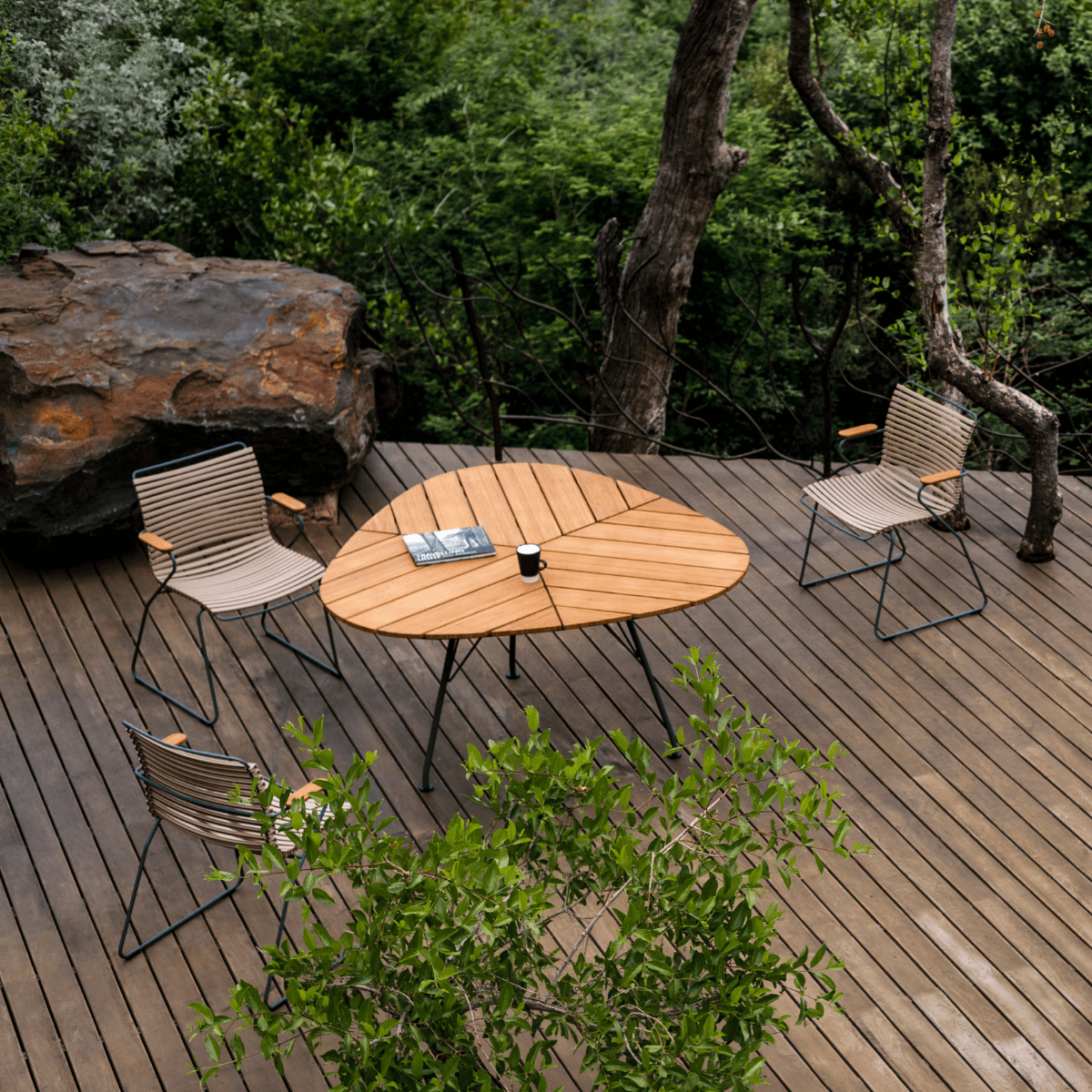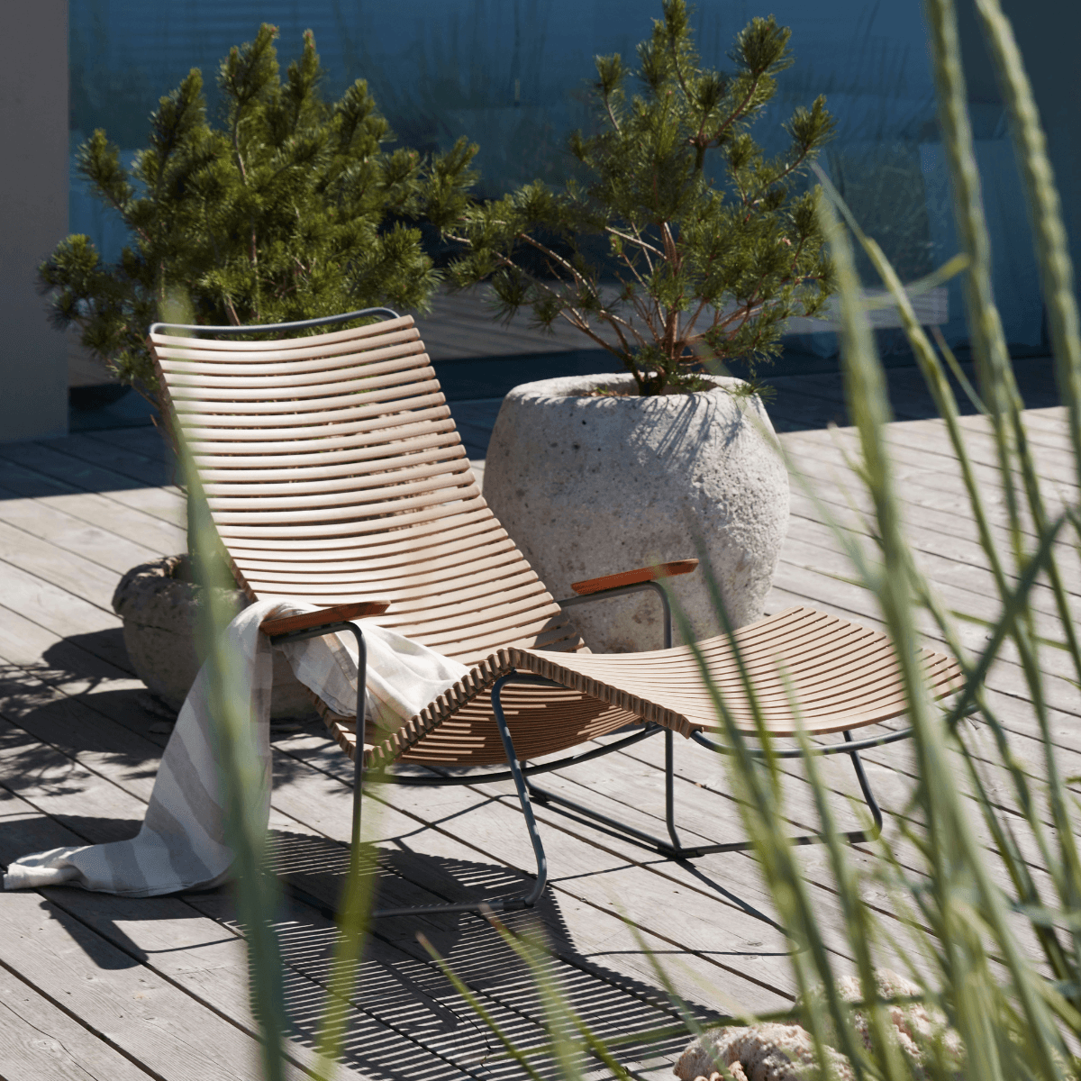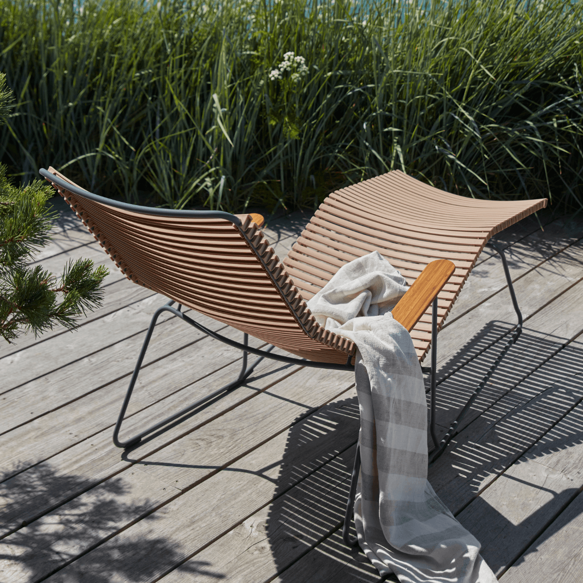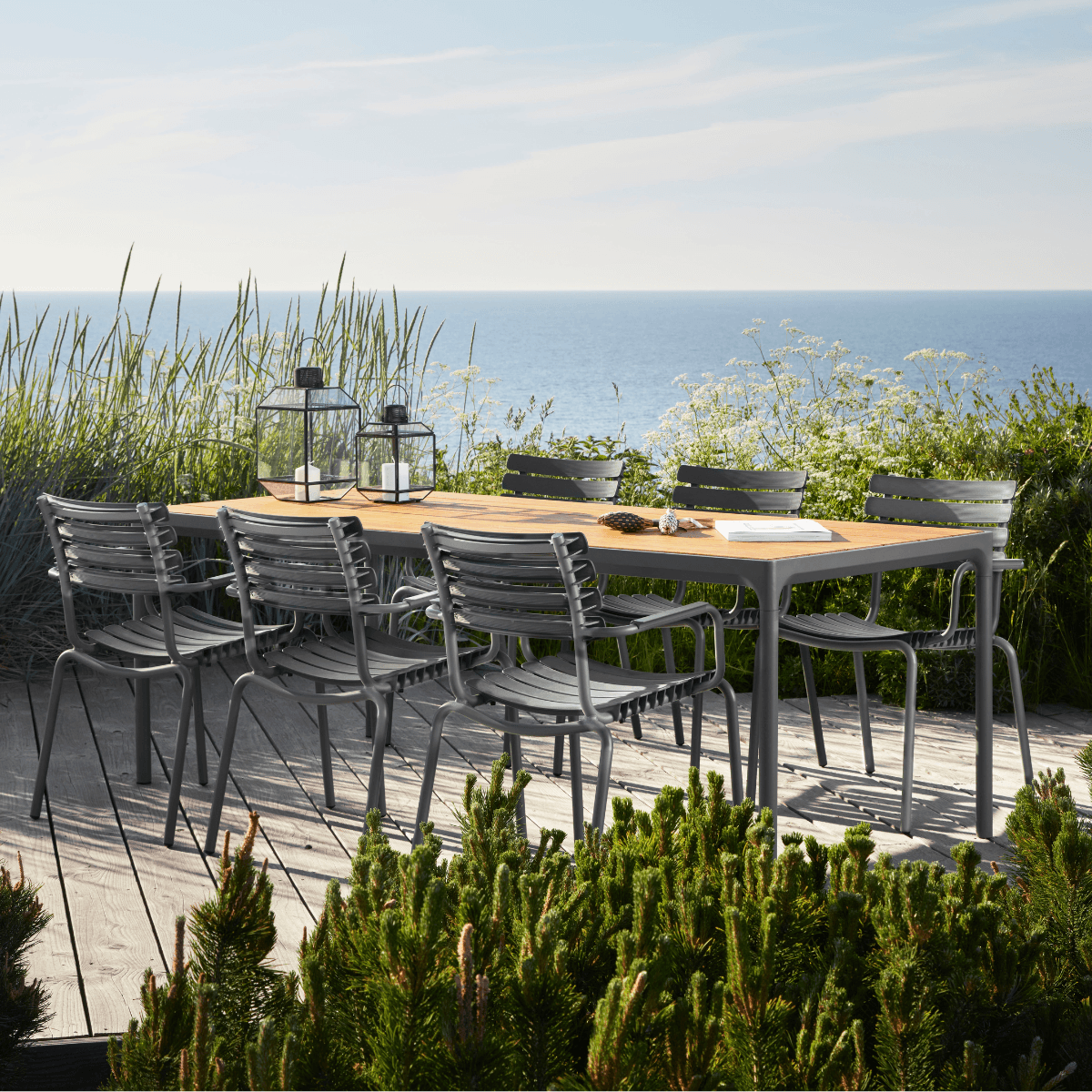 HOUE is committed to sustainable efforts by crafting several of their collections from upcycled materials to reduce the amount of waste in landfills. Their ReClips collection, for example, is made from 97% recycled household plastics using innovative Danish technology. By offering replacement parts like armrests and lamellas, they also ensure their outdoor furniture is easy to repair and maintain like new for the longest lifespan possible. With thoughtful attention to every joint, finishing detail, and manufacturing partner they choose to collaborate with, HOUE designs beautiful outdoor furniture that’s as environmentally-friendly as it is comfortable to enjoy. These pieces can also be ready to ship for free in as little as 2-3 weeks or less!