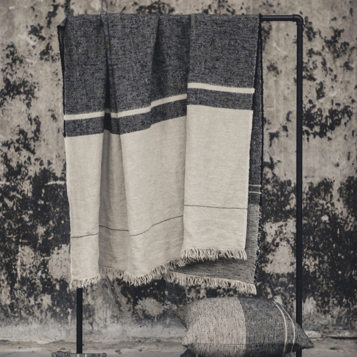 The Francis throw is made of a soft and luxurious fabric. Its design contains a few different stripes, yarns and constructions but it’s the combination of natural flax and black shades that catches the eye.