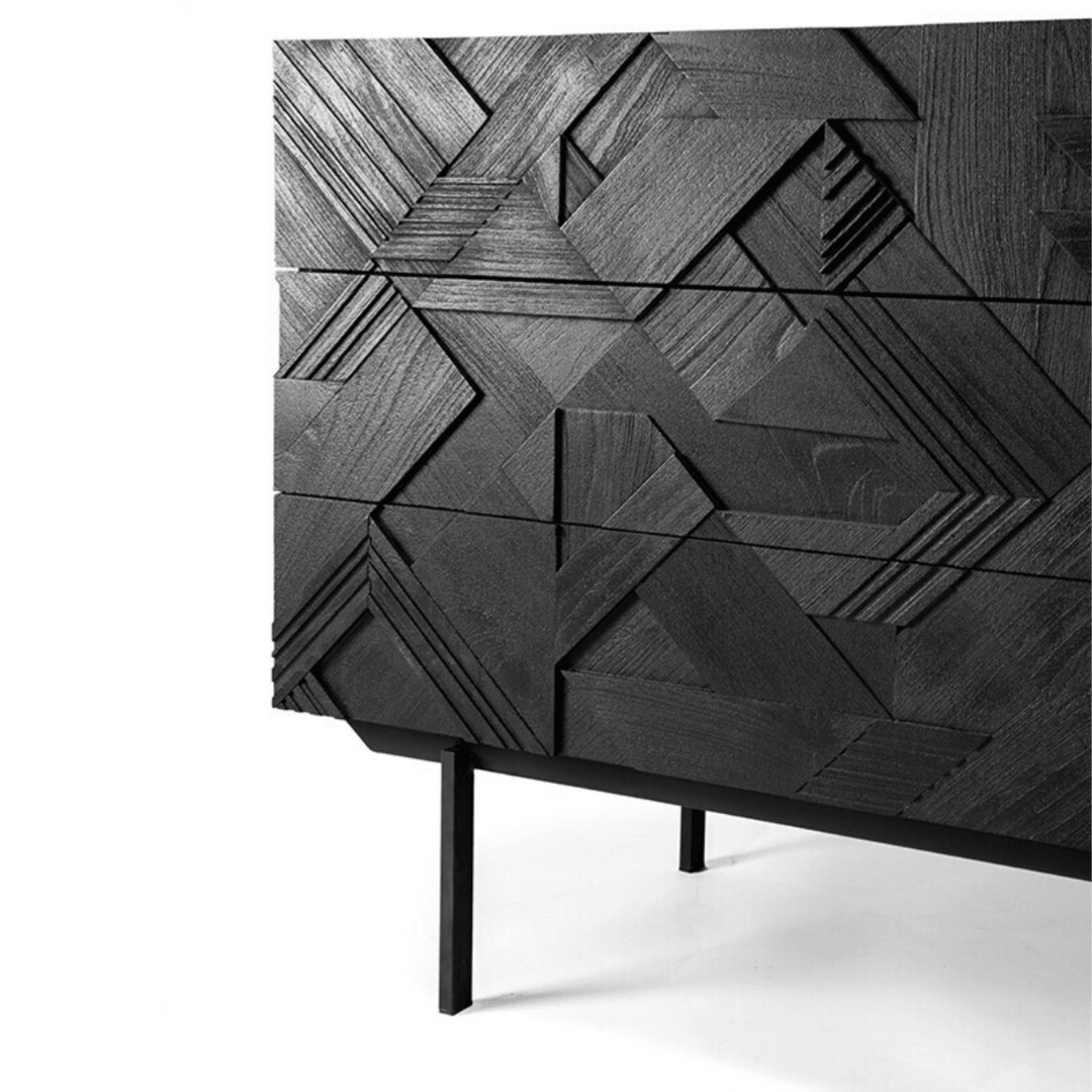 In his quest to add movement to the surface, designer Alain van Havre started layering and combining triangular shapes. Before he knew it he had created a visually enticing composition out of teak and the Graphic design was born. By using multiple layers, a sense of depth and dynamism is created in the intricate arrangement. Motion and warmth are added by further perfecting the natural attributes of wood.