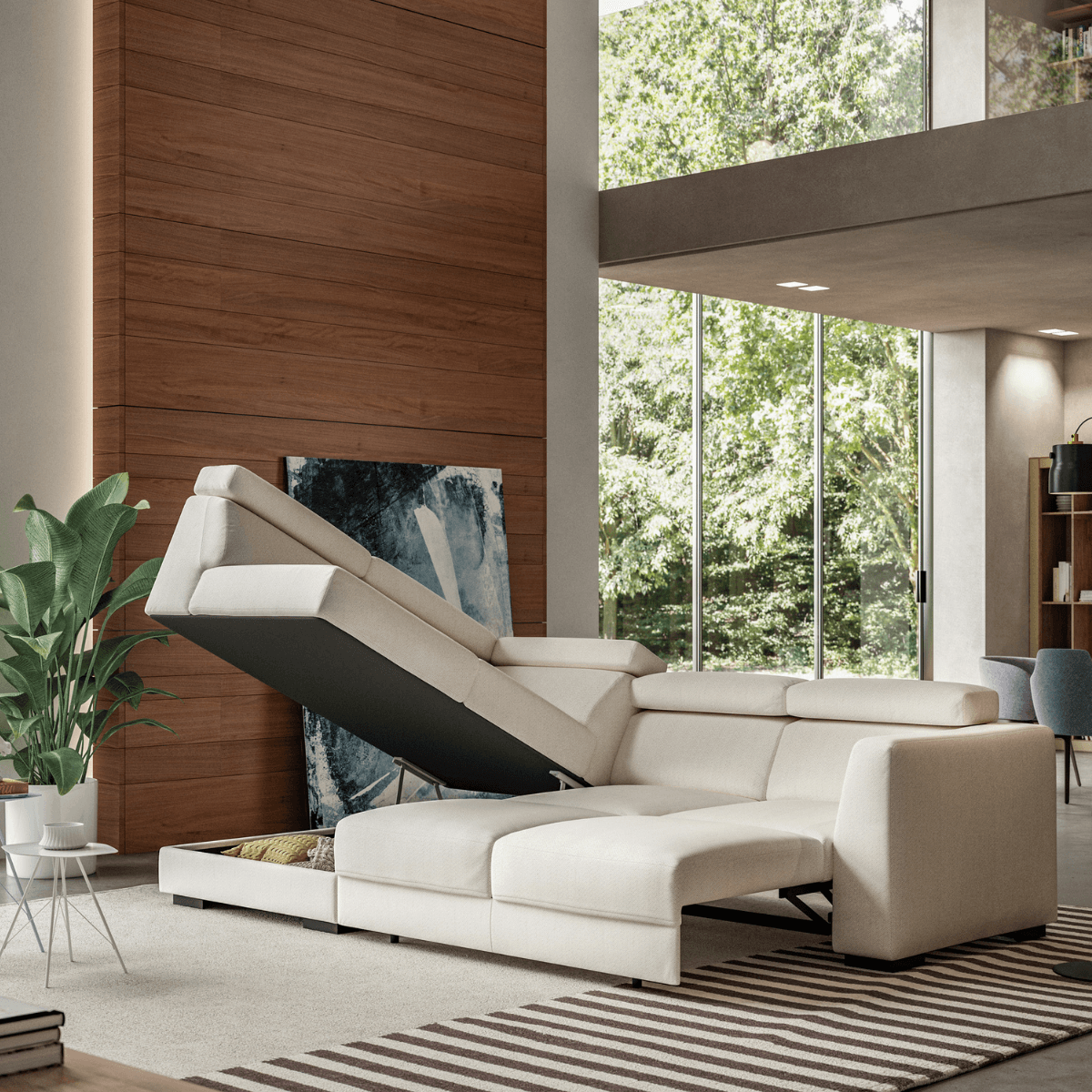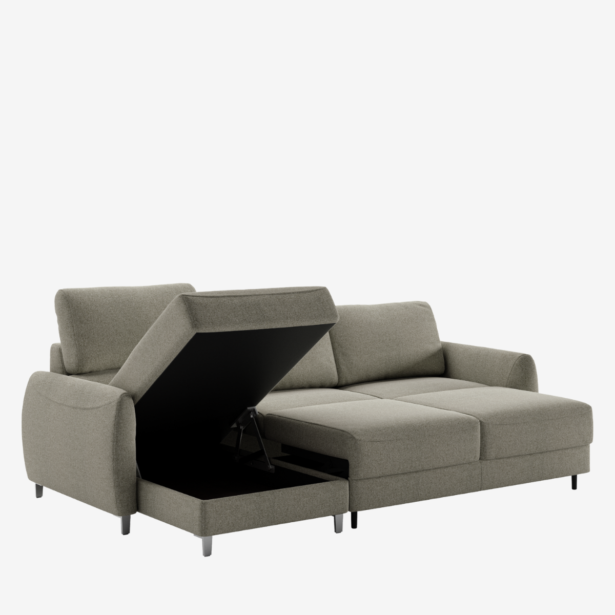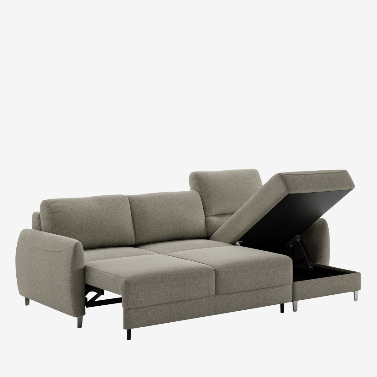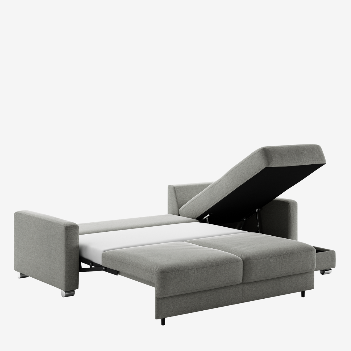 Hampton is a dream come true. As a sleeper sectional it has storage inside the reversible open-able chaise. Available in stock as King, Queen, and Queen plus Chaise bed sizes, you can chose the layout that is best for your space, no matter small or large. Paired with Hybrid Function, converting from sofa to bed is easily done with 2 simple steps.