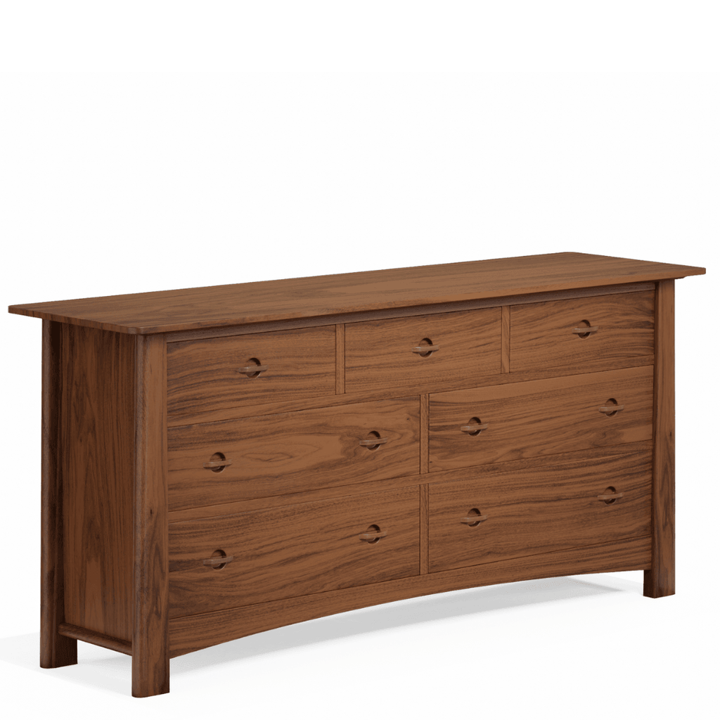 The Harvestmoon Seven Drawer Dresser combines Asian and modern elements that give both a light and grounded appearance. All drawers feature full-extension, soft-close slides and Walnut drawer pulls. Available in Natural Cherry, Maple, or Walnut hardwood.