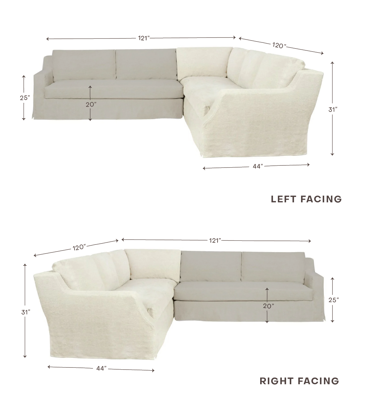 • Sofa Return: 120" W x 44" D x 31" H
