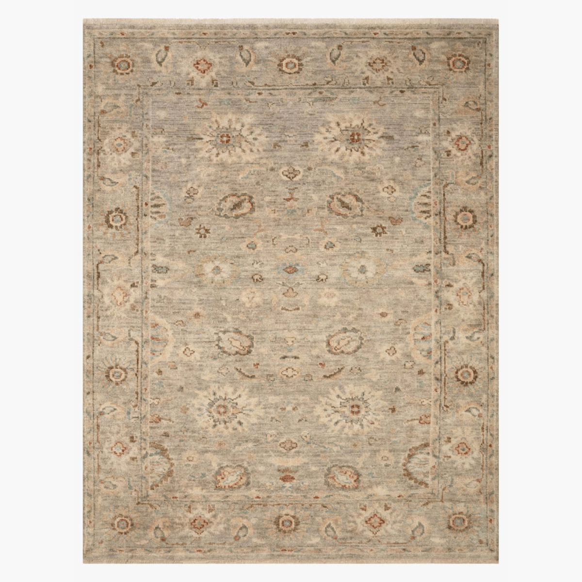 Helena Hand Knotted Rug in Light Grey/Multi