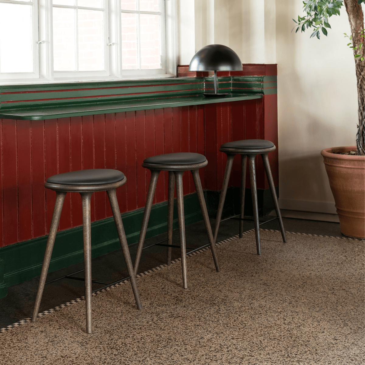 The Mater High Stool is designed by the Danish architect duo Space Copenhagen and is regarded as a New Danish Classic. With its organic yet minimalist style, this bar stool is suitable for both residential and commercial use. The wood is FSC® certified - the label for responsible forestry - with a water-based stain. The upholstery is genuine leather.