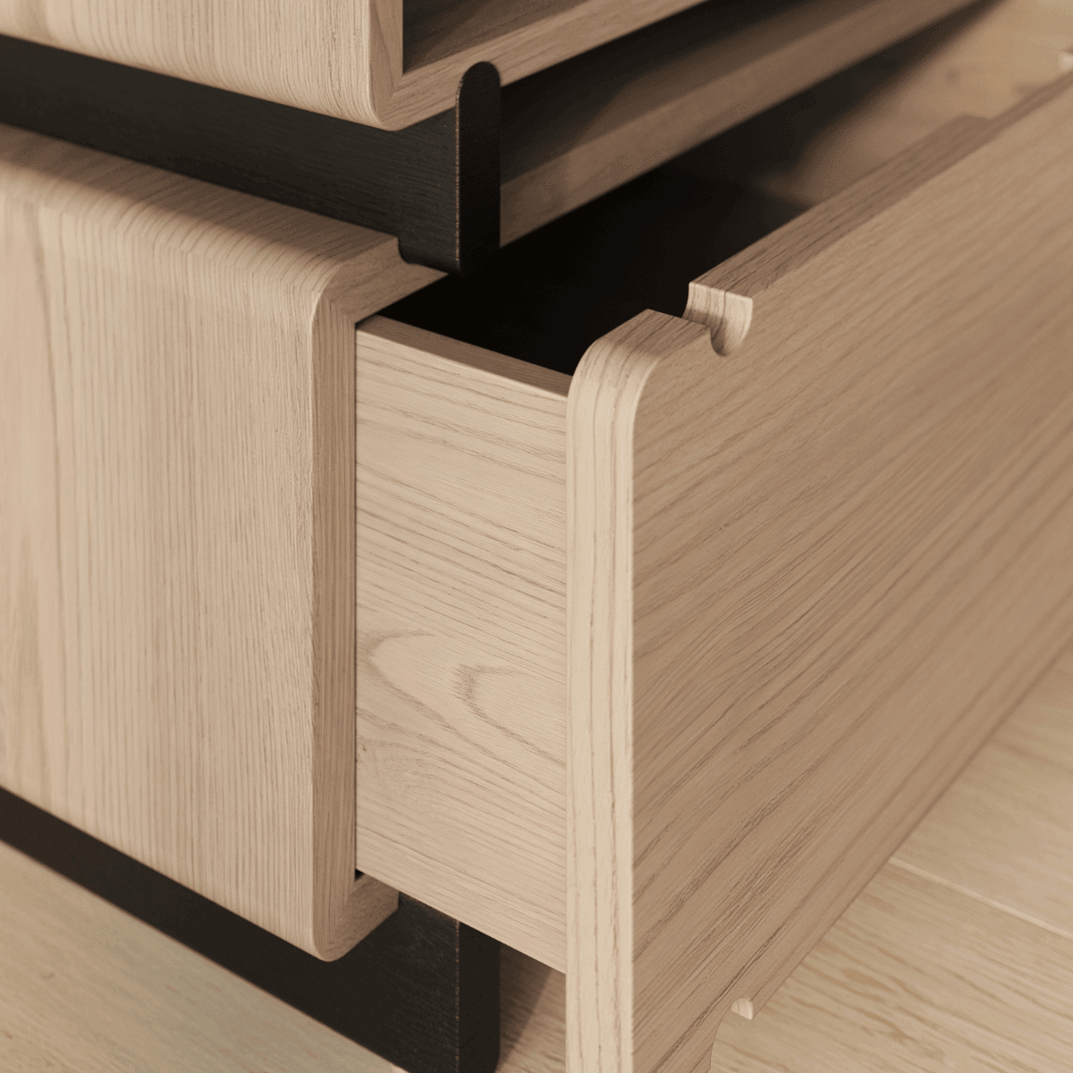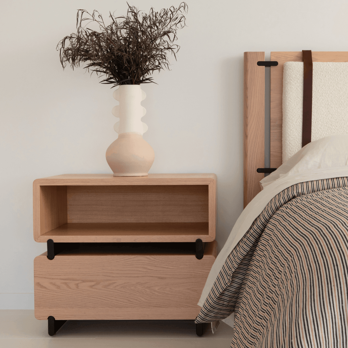 The Join Collection celebrates the function of connection — showcasing traditionally hidden joinery with intentional design. Space between connecting elements communicates lightness and simplicity, a departure from the bulk of traditional bedroom furniture. Discover the pairing of disparate parts and contrasting materials with sustainable and solid materials that celebrate the strength of coming together.