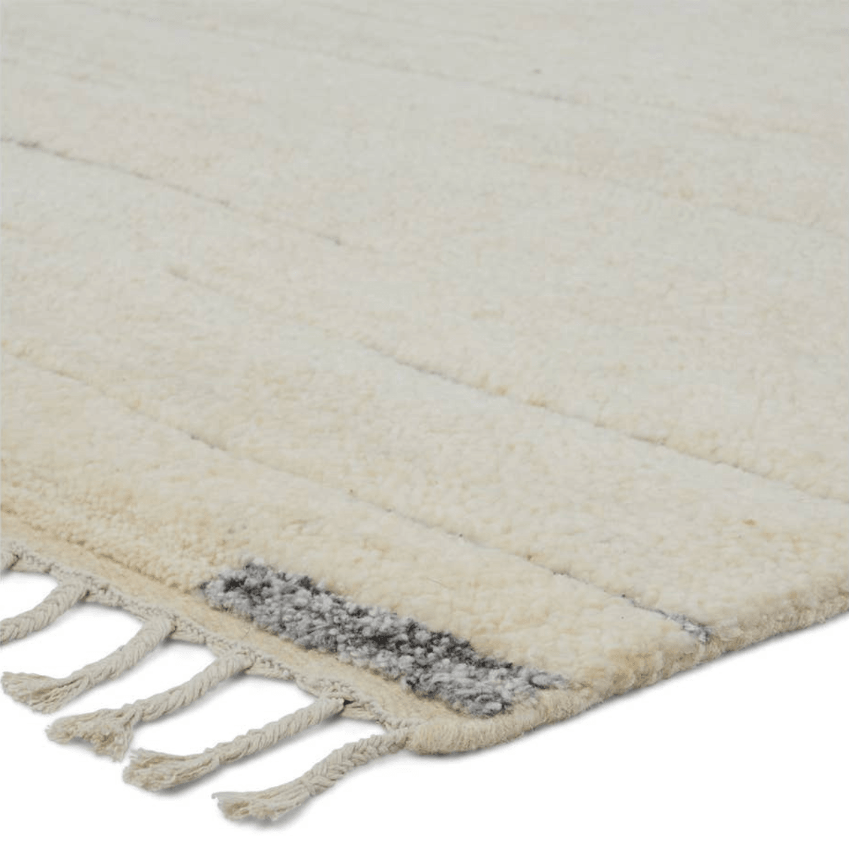 The Keoka collections boasts a fresh take on classic Afghani hand-knotted textiles. In rich, grounding tones of gray and ivory, the stylish contrast of the Furrow rug anchors room with bold yet neutral appeal. The texture-rich wool pile features a ribbed construction that lends unique linear details to the grounding solid design. Braided fringe accents and a gray-colored flatweave border add a dose of global flair.