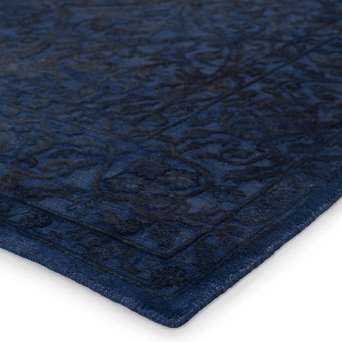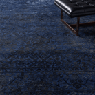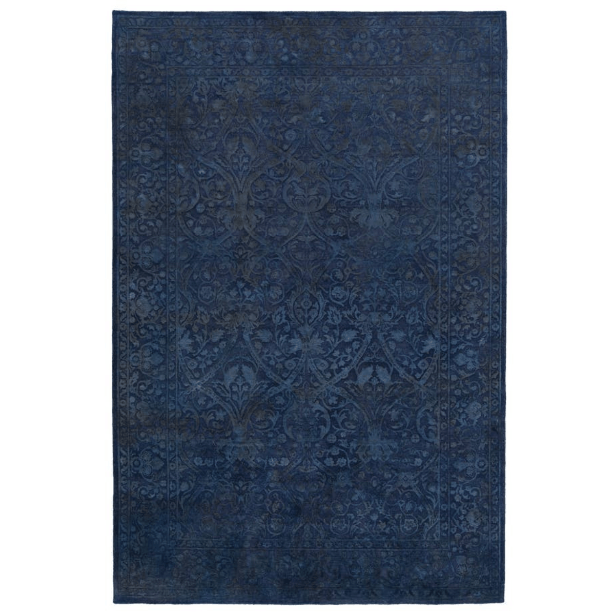 Inspired by ornate, antique Turkish designs, the Lacuna collection draws from luxurious style and breathtaking design. The hand-knotted Drass rug features a deep, captivating overdyed look with scrolling, intricate details and a rich blue, silver, and charcoal palette. Hand-crafted of wool and lustrous silk, this hand-carved rug boasts a soft, inviting, and textural feel.