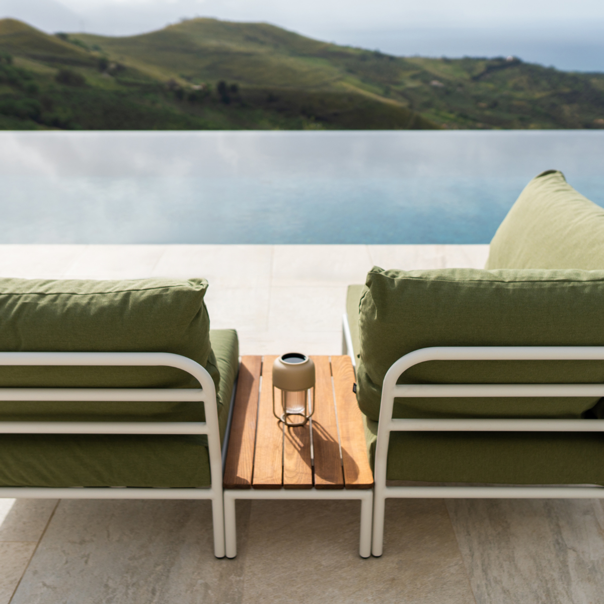 Level 2 is a collection of modular outdoor lounge furniture. The modules can be combined in many different ways. The lightweight aluminum frame and the soft cushions in two models create both contrast, comfort and tempt with a relaxed lounge atmosphere. All cushions are water and stain resistant and easy to maintain.