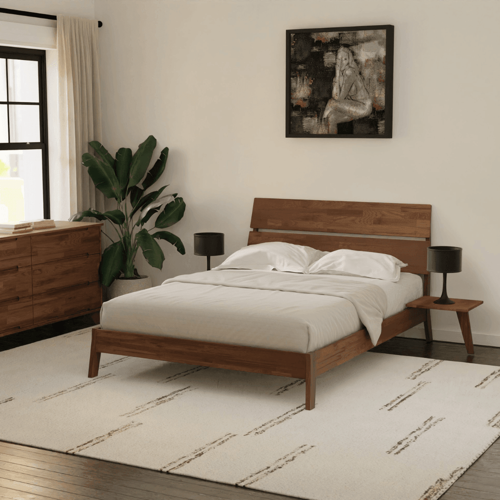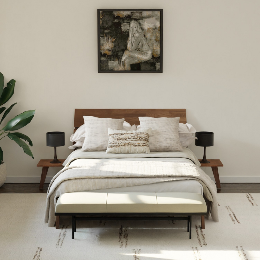 The Linn bedroom is meticulously handcrafted from ethically-sourced solid wood and is fully customizable with your preferred finish. With its understated and modern design, the Linn Bed is meant to accommodate just a mattress for a sleek, low-profile look.