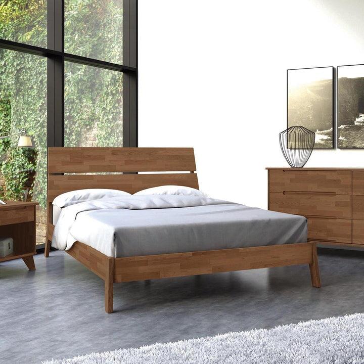 Linn is an upcycled bedroom collection, crafted with lumber that has been reclaimed from Copeland's operations. It features moderate scaling and a soft contemporary design. The Linn Bed is a platform bed, designed for a mattress only. It is perfectly complemented by attachable shelf nightstands or standalone nightstands with a drawer, and any of the collection's accompanying dressers.