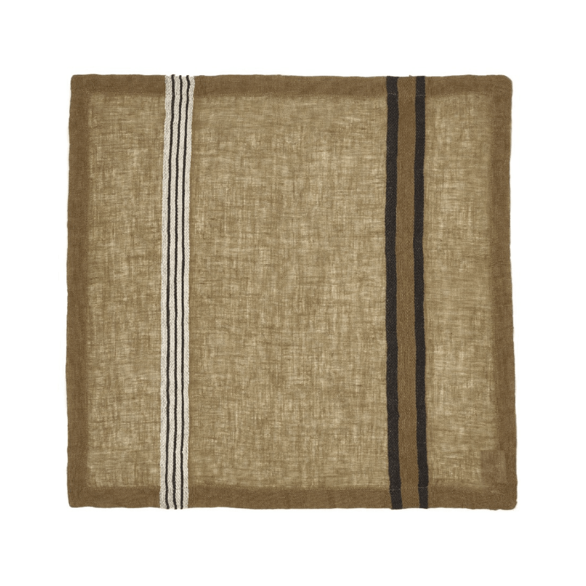 No explanation needed on the name! The napkin has a ginger colored ground with a bone and black stripe on one end and a black and ginger stripe at the other end.