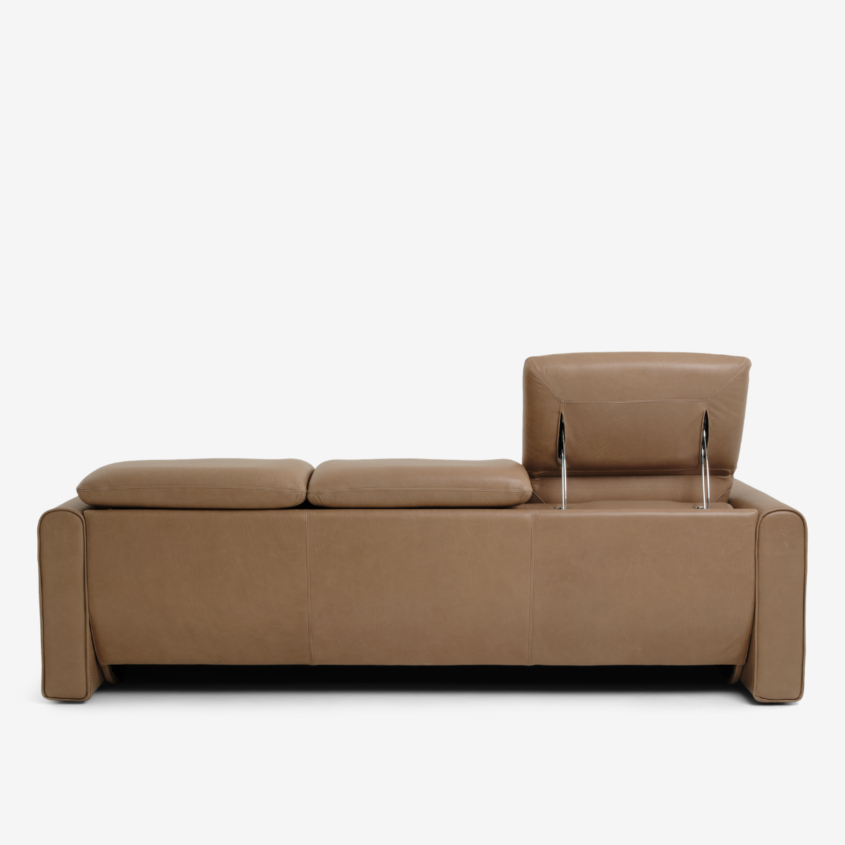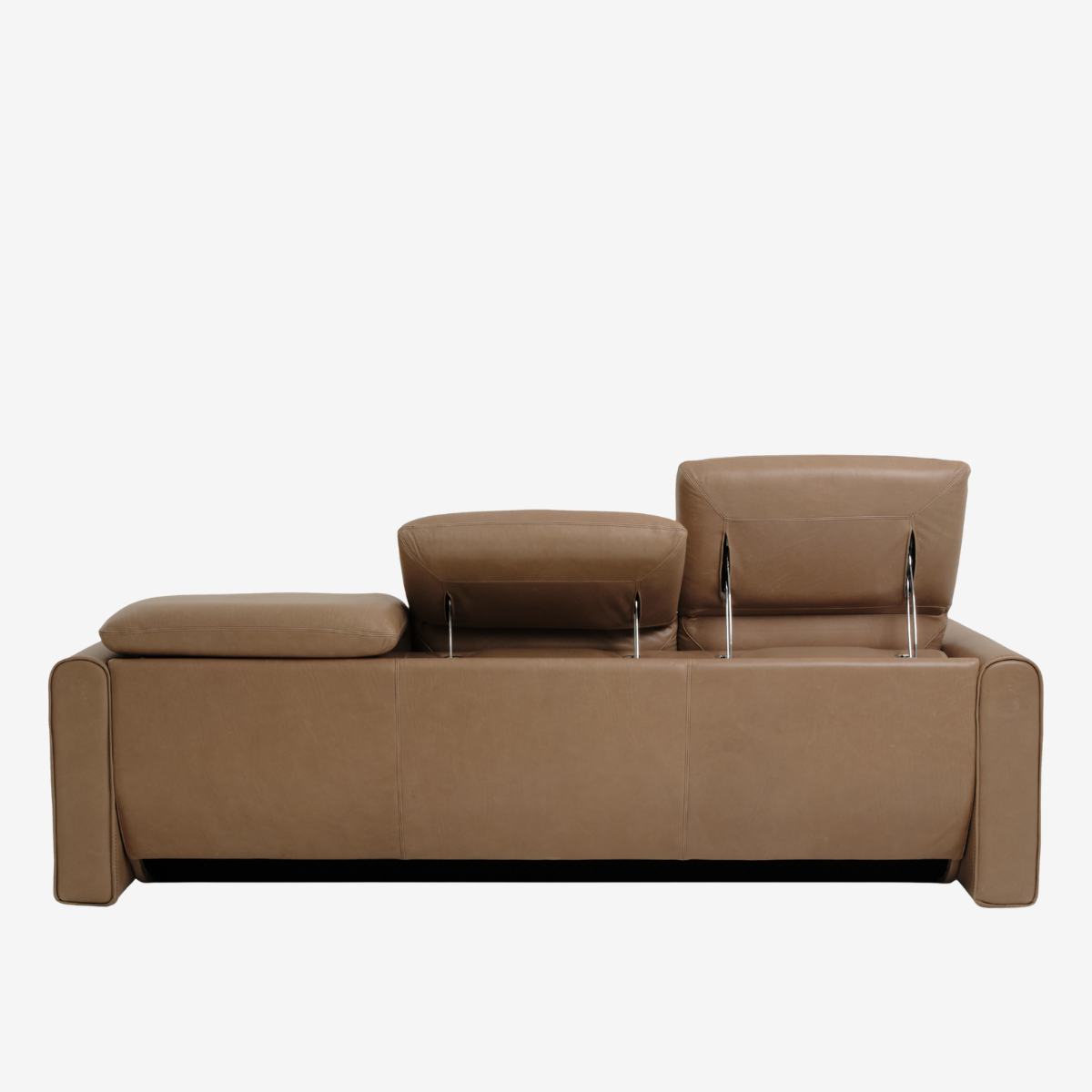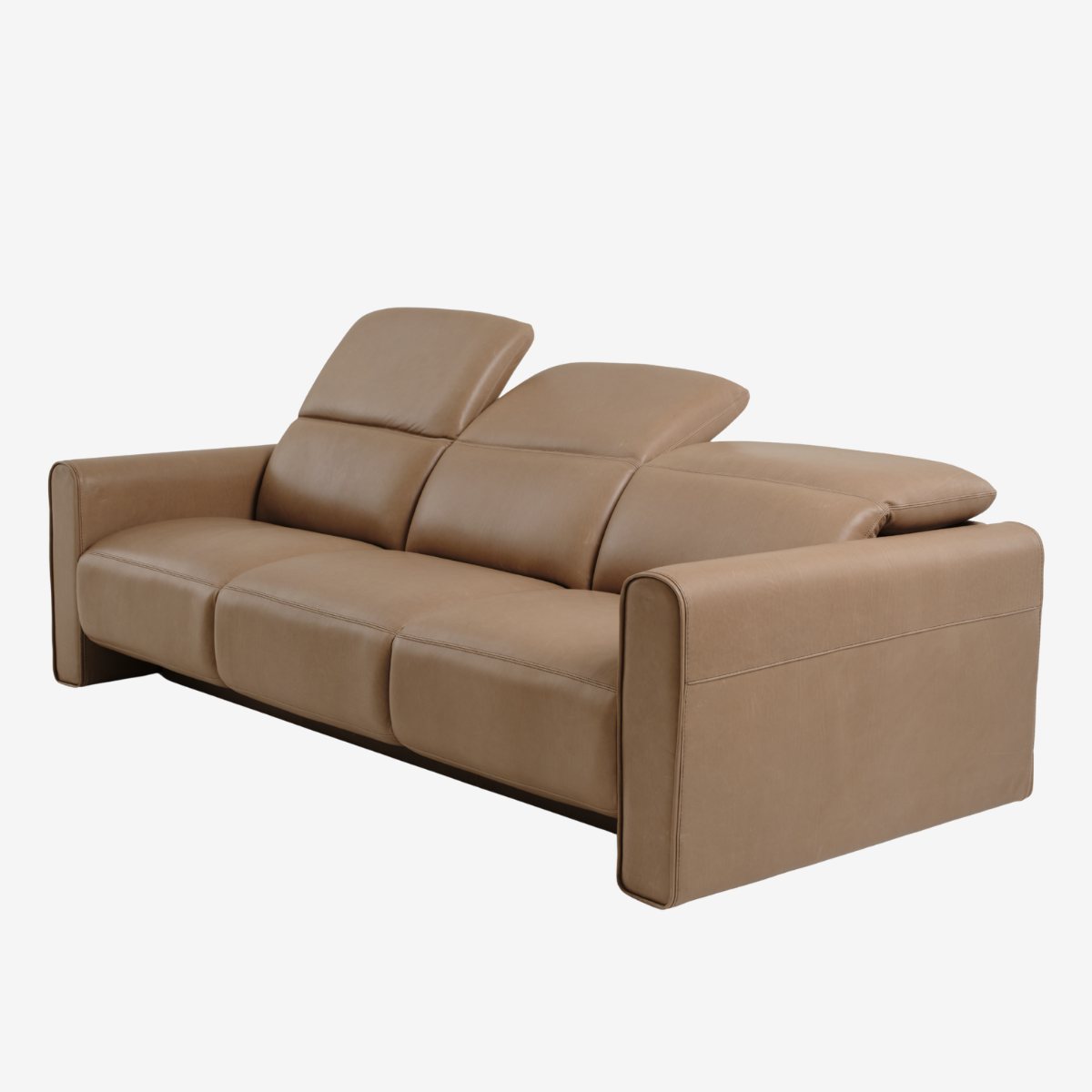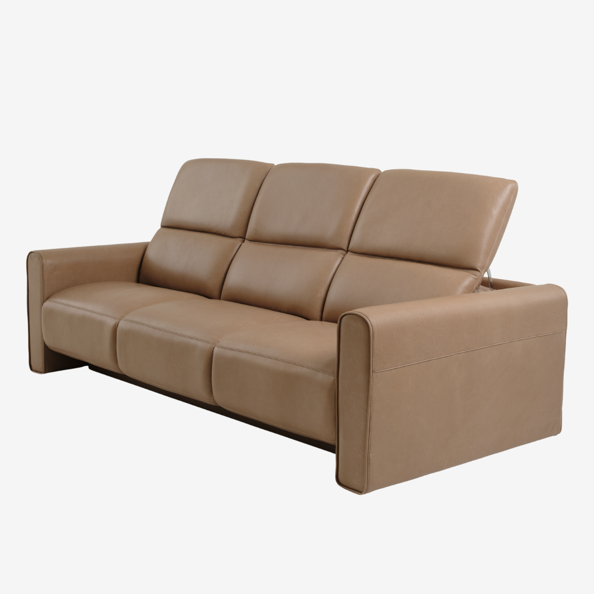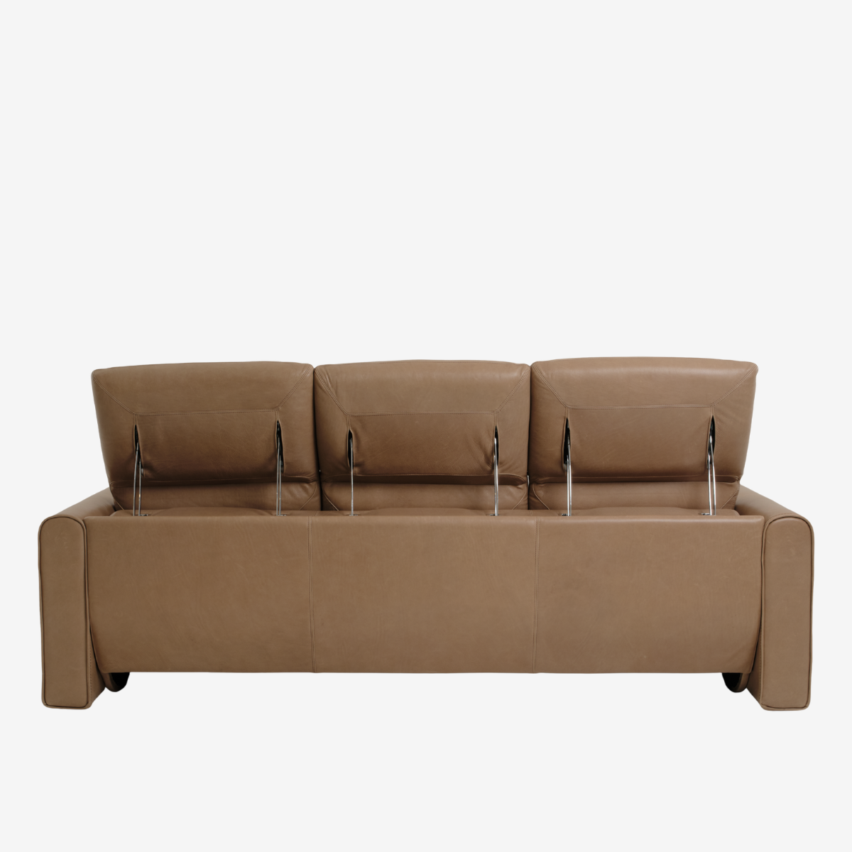 - Flange arm design features single-needle top-stitch with thick thread; double-needle stitching accents on seats and backs