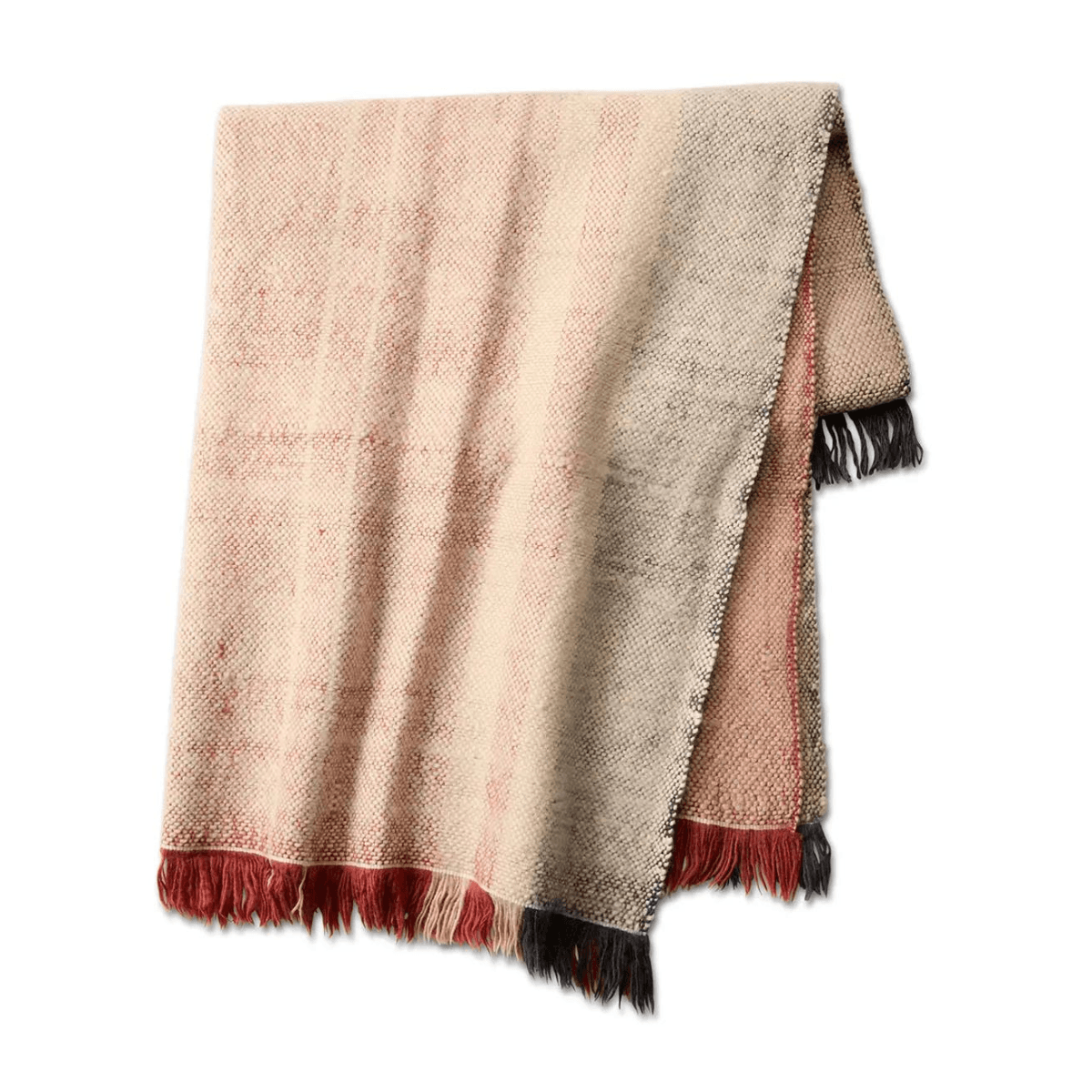 The Neem & Jaipur Living present the Margosa collection, offering stonewashed and embroidered handcrafted throws, blankets, and bedding expertly crafted of soft cotton and hand-spun wool in India. Grounded in ancient textile traditions, this collection brings natural designs and textures through indigenous techniques, nature-inspired colors, and raw fibers. The Siamak throw offers a textured, striped design in tan, red, and slate hues. Handwoven in India of 100% wool, this accent piece provides a global style to any contemporary home.