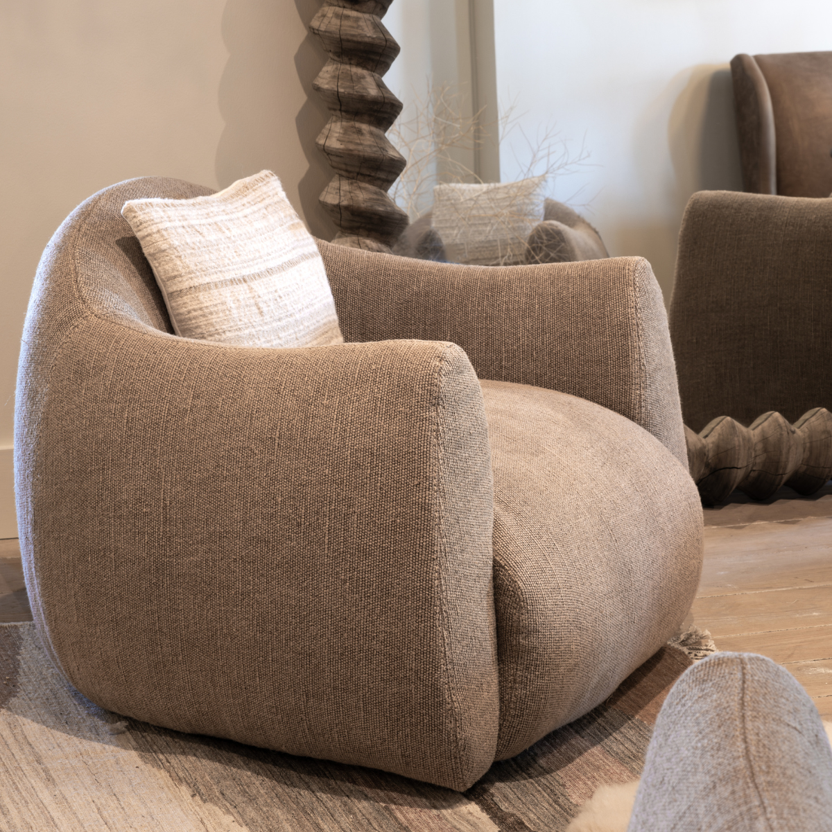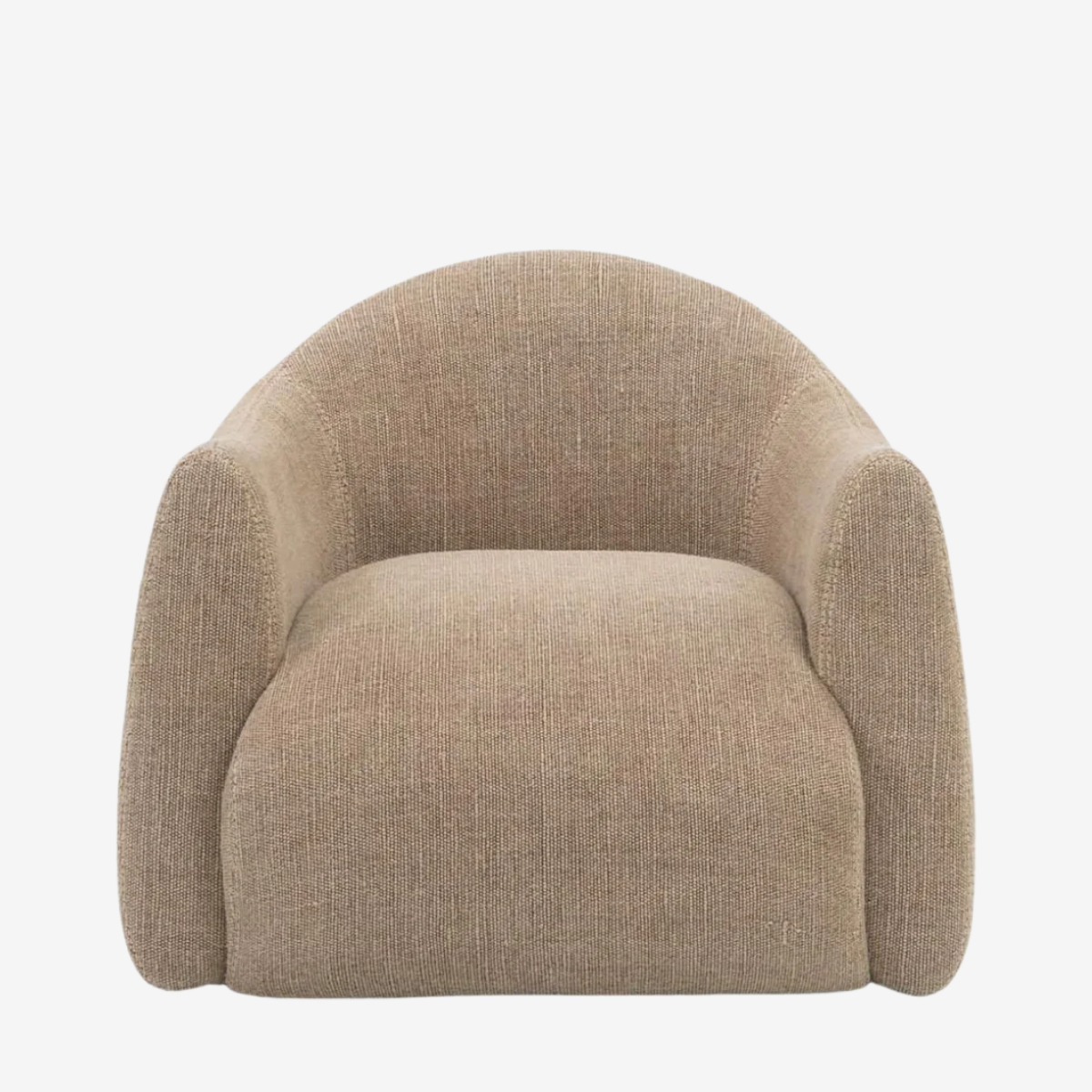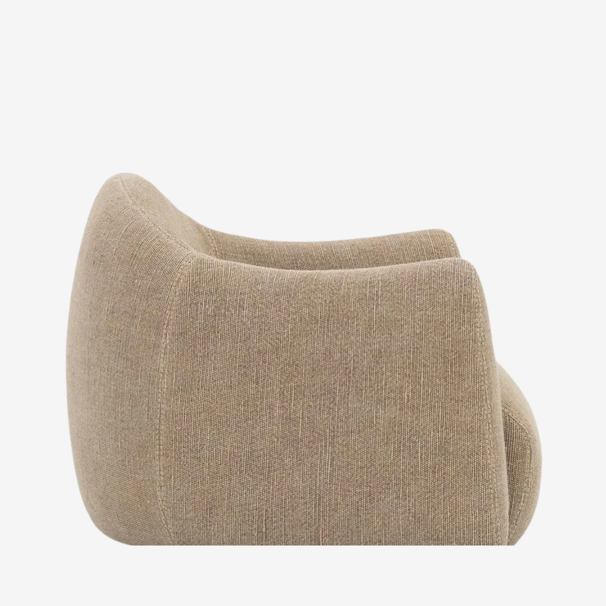 The Mina Swivel Chair enchants with its smooth, rounded silhouette, gentle curves, and a tight waterfall seat cushion.