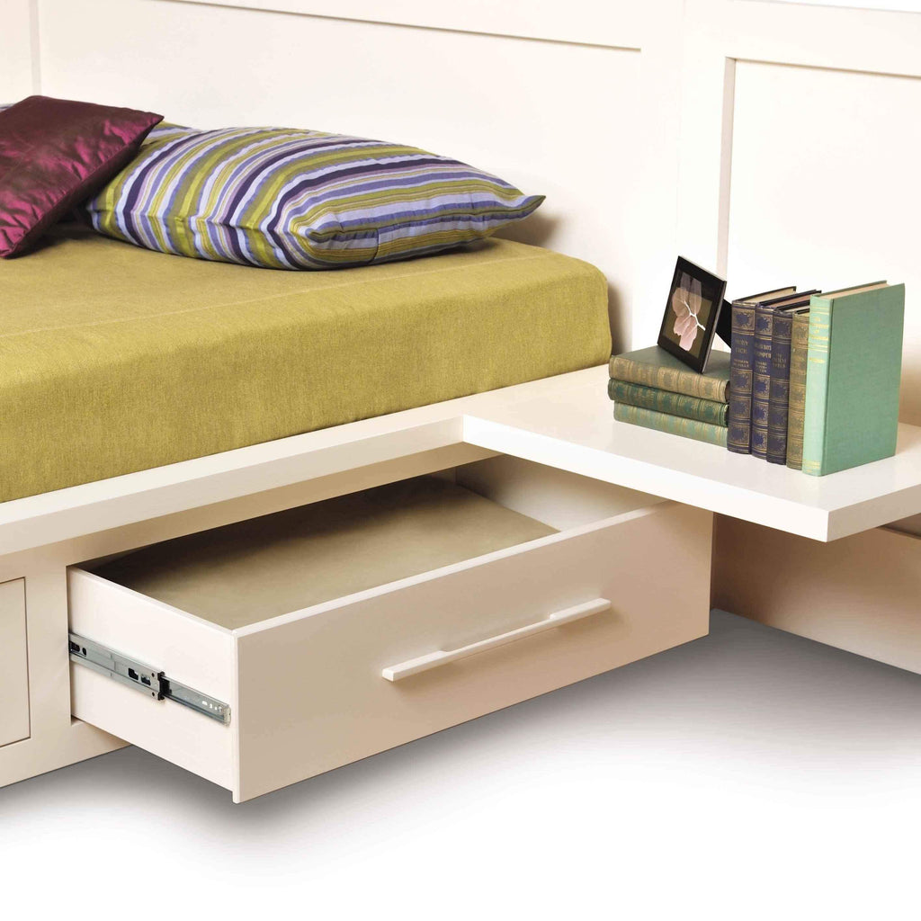 Moduluxe is a highly configurable bedroom and storage system that can adapt to most spaces and needs. Moduluxe Beds, configured for mattress only, may be ordered in multiple headboard designs with either under-bed storage or with a deeply in-set plinth base for a dramatic floating motif. All beds are available with attachable nightstands with either a flat shelf or single drawer storage.