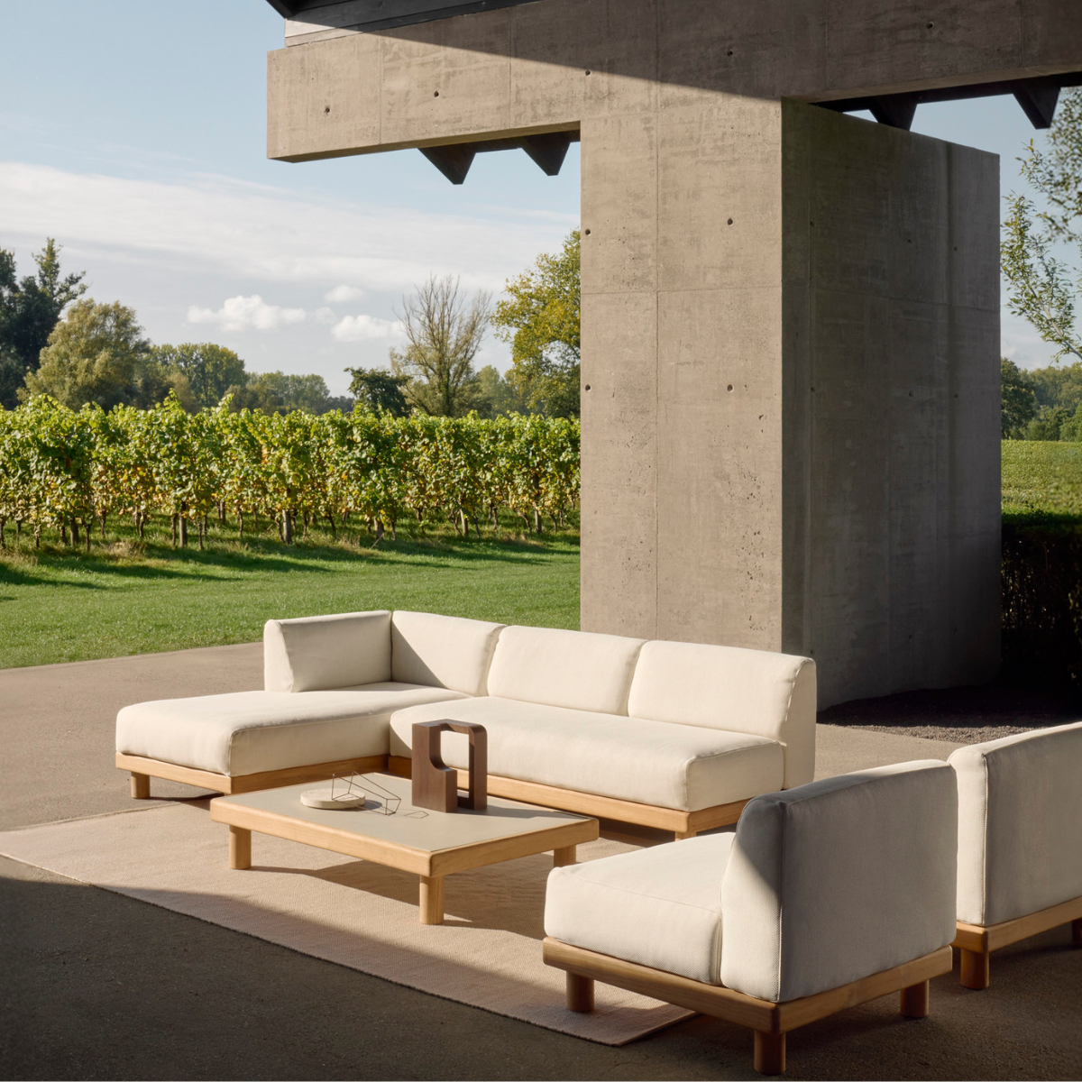 Combining elegance and sleek lines in a relaxed silhouette, the Monocle feels refined, inviting and grounded. Its soft cushions bring an indoor level of comfort to outdoor living, while the solid wooden base anchors the piece with warmth and balance. Choose from pre-configured options or tailor your own setup to create a sofa as unique as your space.