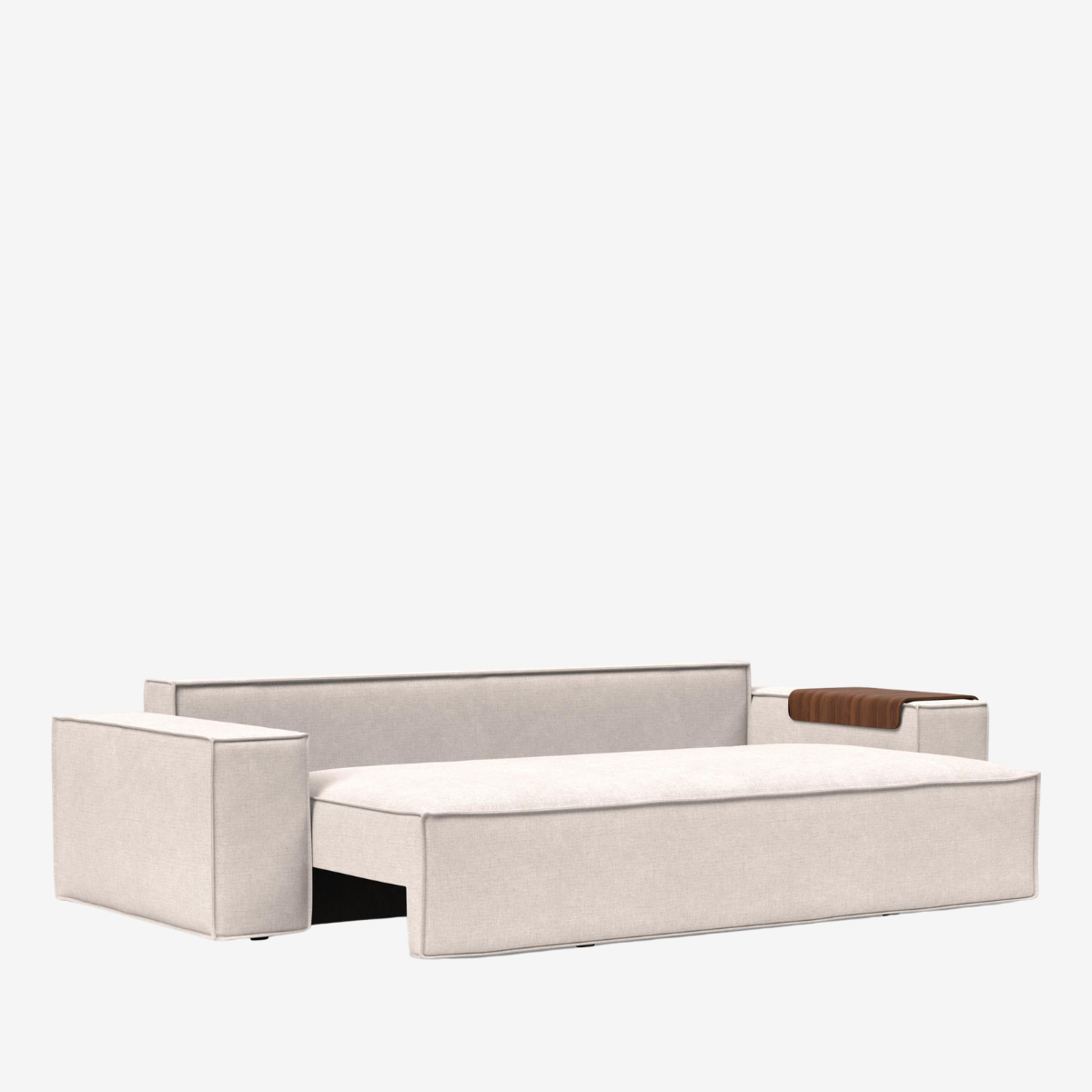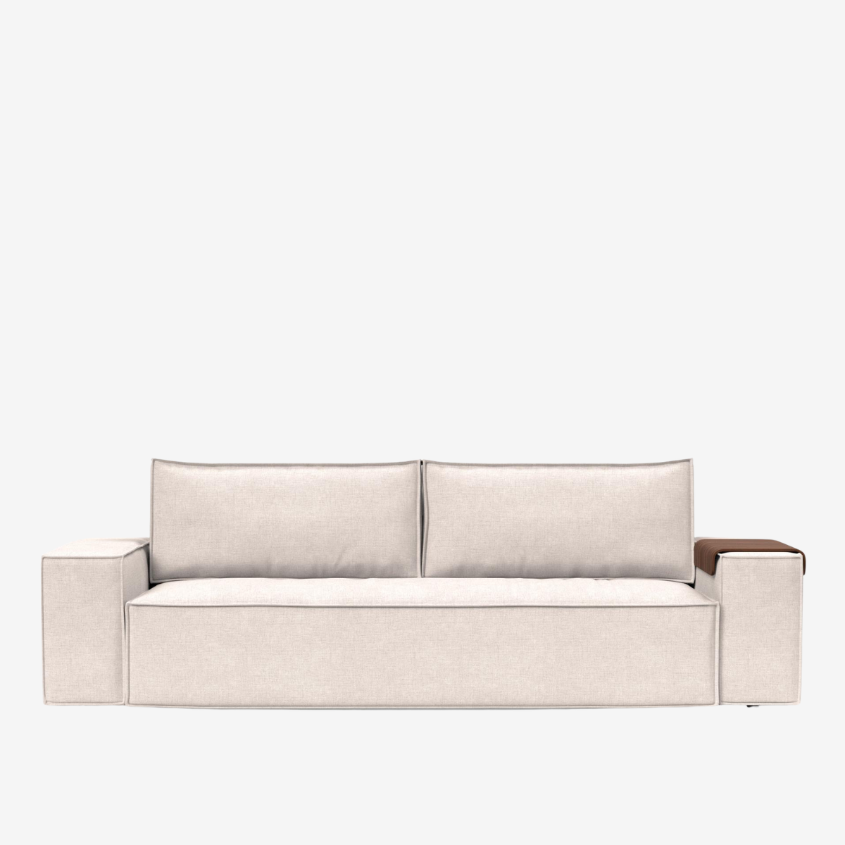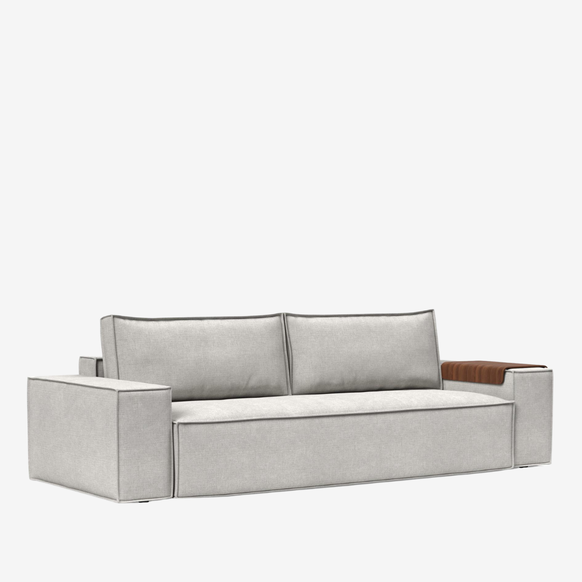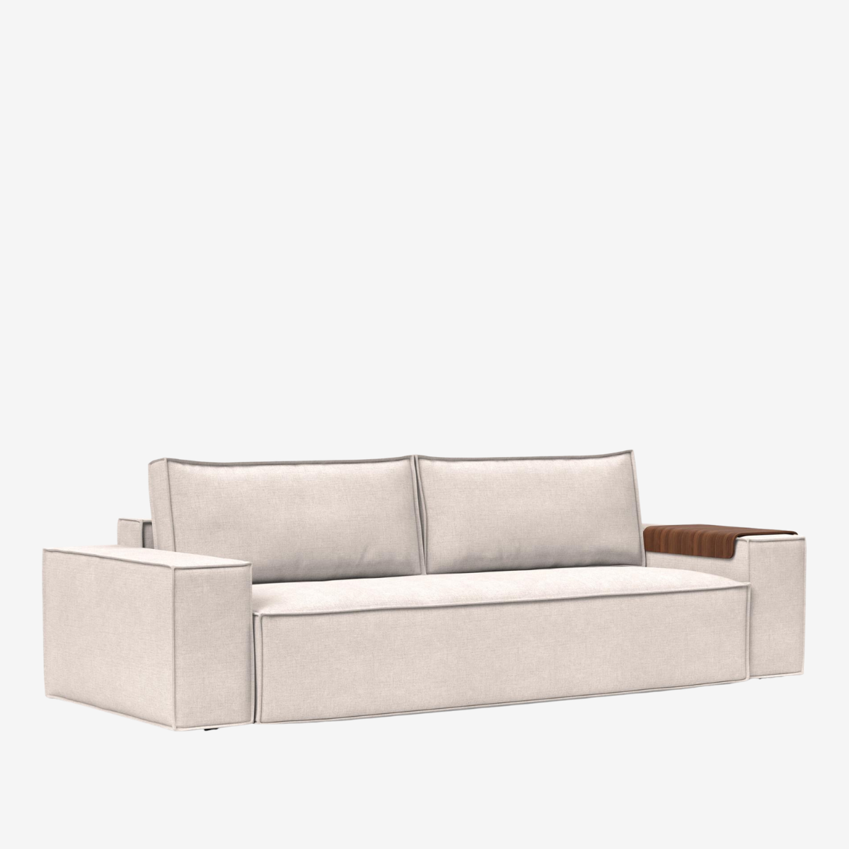 The Newilla sofa bed with wide arm is the perfect choice for working in the most comfortable way. Choosing the walnut wood tray alongside it turns the armrest into a versatile replacement for a side table. Newilla features a large storage space, and can easily be transformed into a spacious bed for two. The detachable and washable covers ensure a long product life cycle, and the possibility to change the fabric of the sofa.