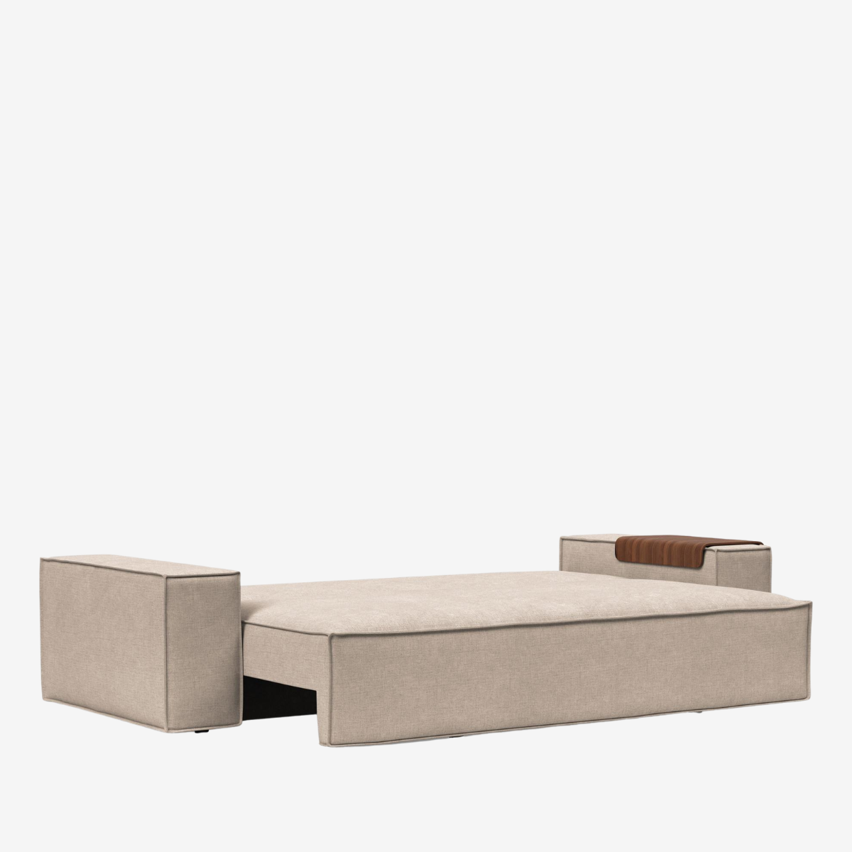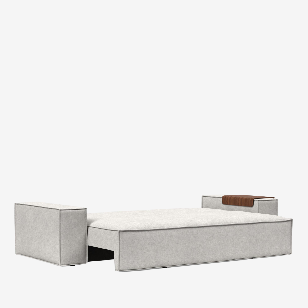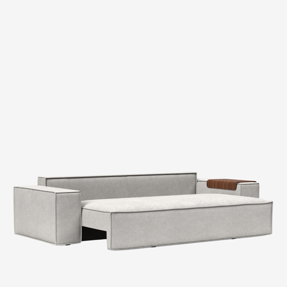 The Newilla sofa bed with wide arm is the perfect choice for working in the most comfortable way. Choosing the walnut wood tray alongside it turns the armrest into a versatile replacement for a side table. Newilla features a large storage space, and can easily be transformed into a spacious bed for two. The detachable and washable covers ensure a long product life cycle, and the possibility to change the fabric of the sofa.