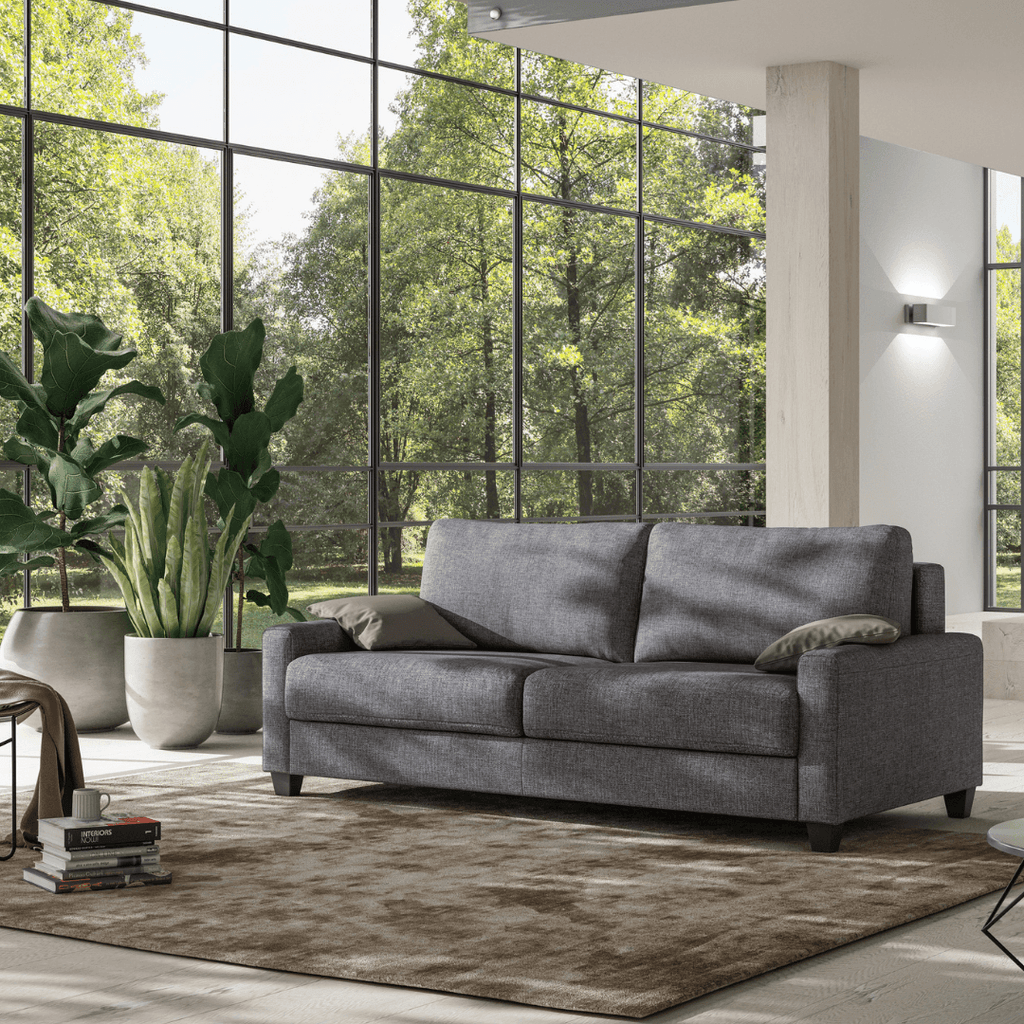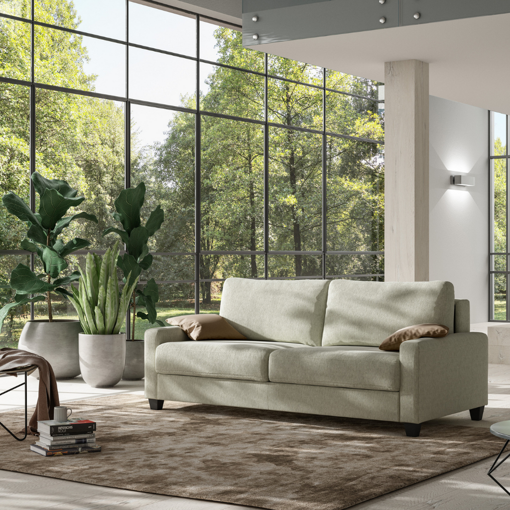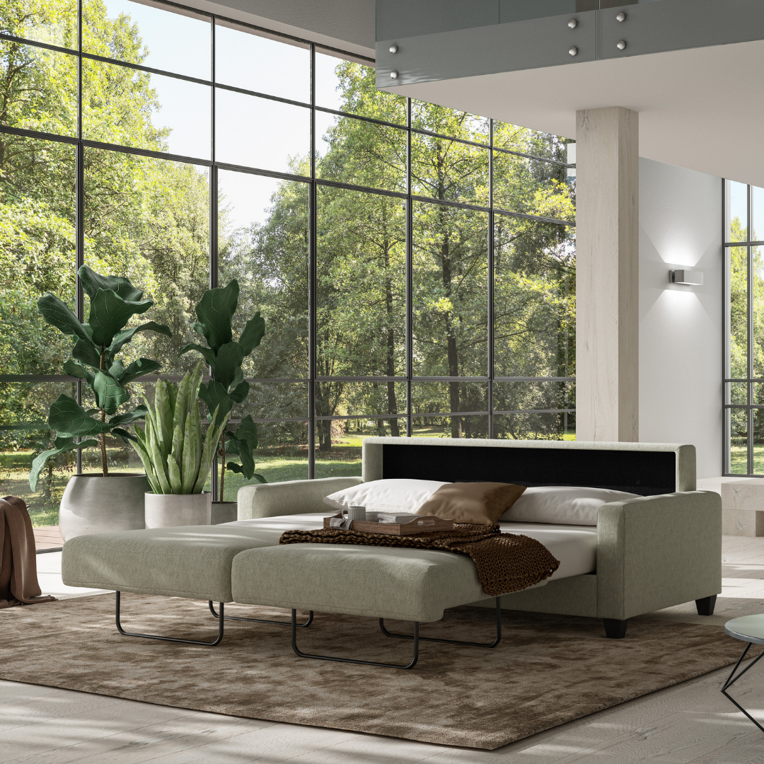 A transitional design with our best-selling sleeper function. Nico maintains its conservative look with thin track arms while entering into a more contemporary space with its low profile.