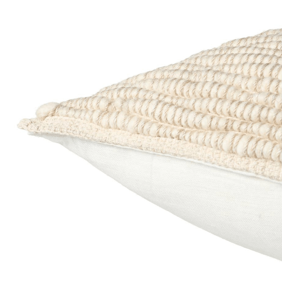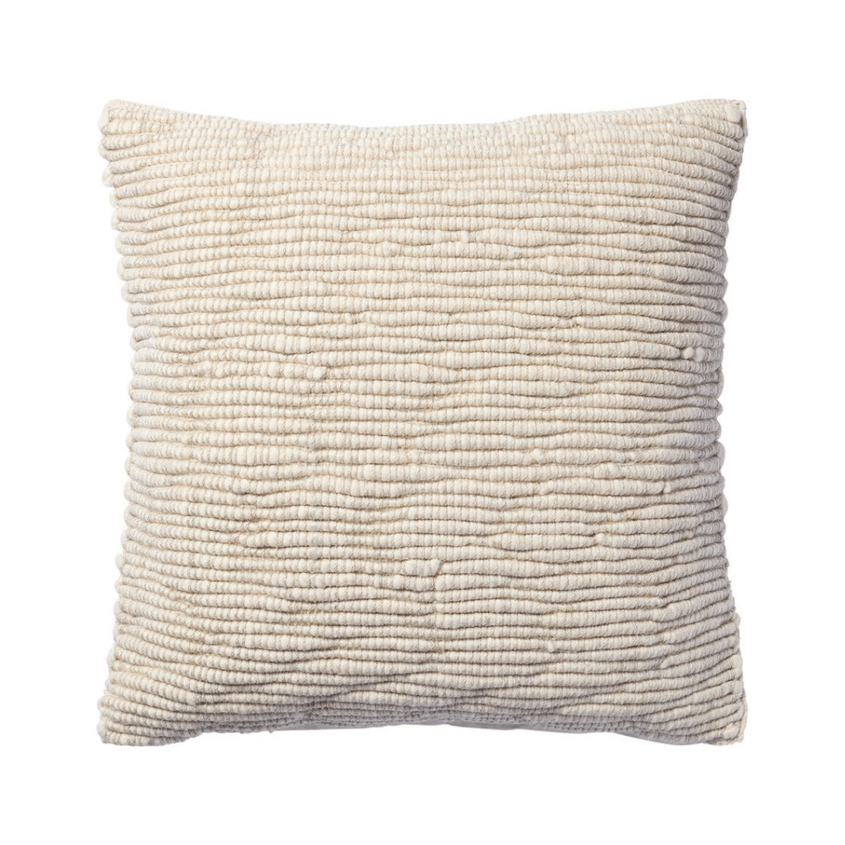 Inspired by glacial formations, the handcrafted Crevasse pillow features prominent striations in a cream colorway. The rich texture provides visual intrigue in any indoor space such as living rooms and bedrooms.