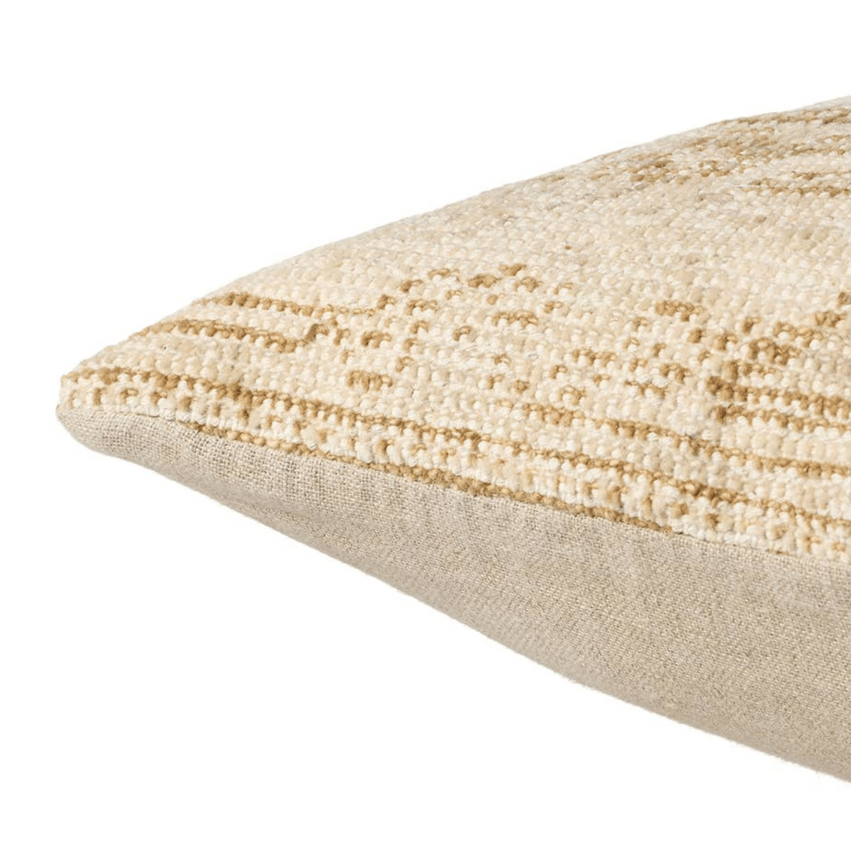 The warm gold geometrics of the Sayat pillow combine with a hand-trimmed, low pile to evoke the timeworn Turkoman designs of the past. The cream and gray base provide a comforting warmth, while the 100% wool fibers promise durability and natural stain-resistance. This throw pillow adds elegance to any contemporary indoor space.