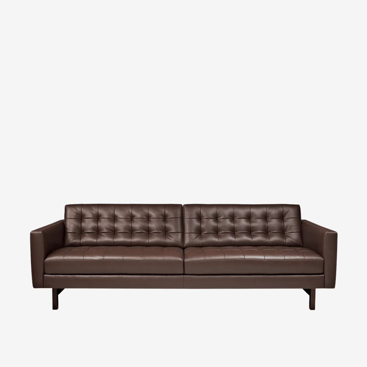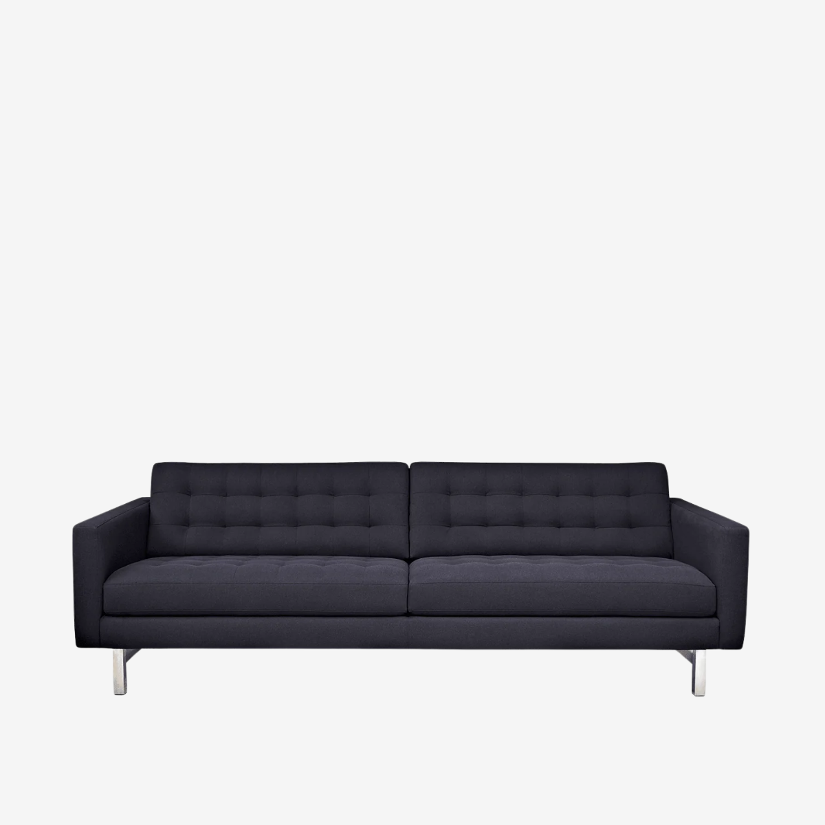 The Parker's elongated cushions, detailed tufting, and clean arms emphasize the architectural feel of this style. The entire silhouette rests on your choice of stainless steel or wood legs that stretch front to back.