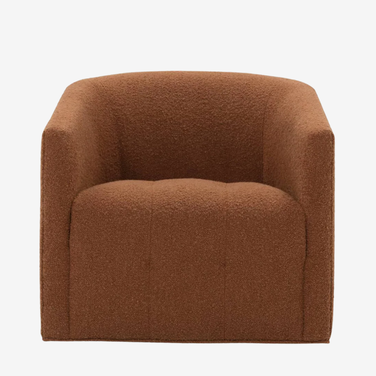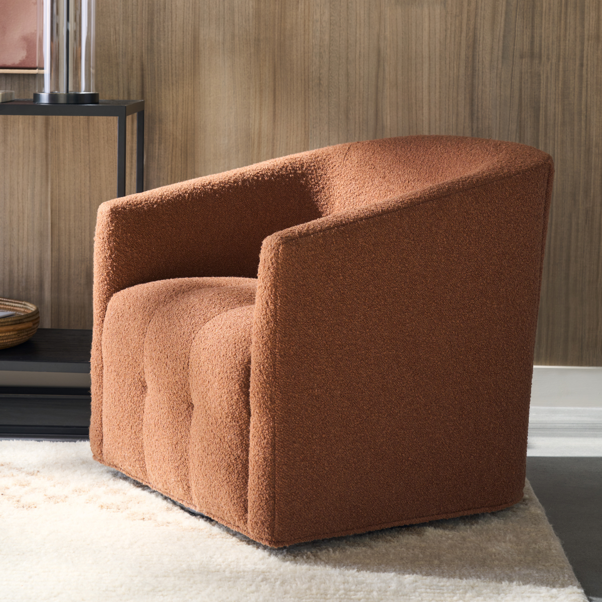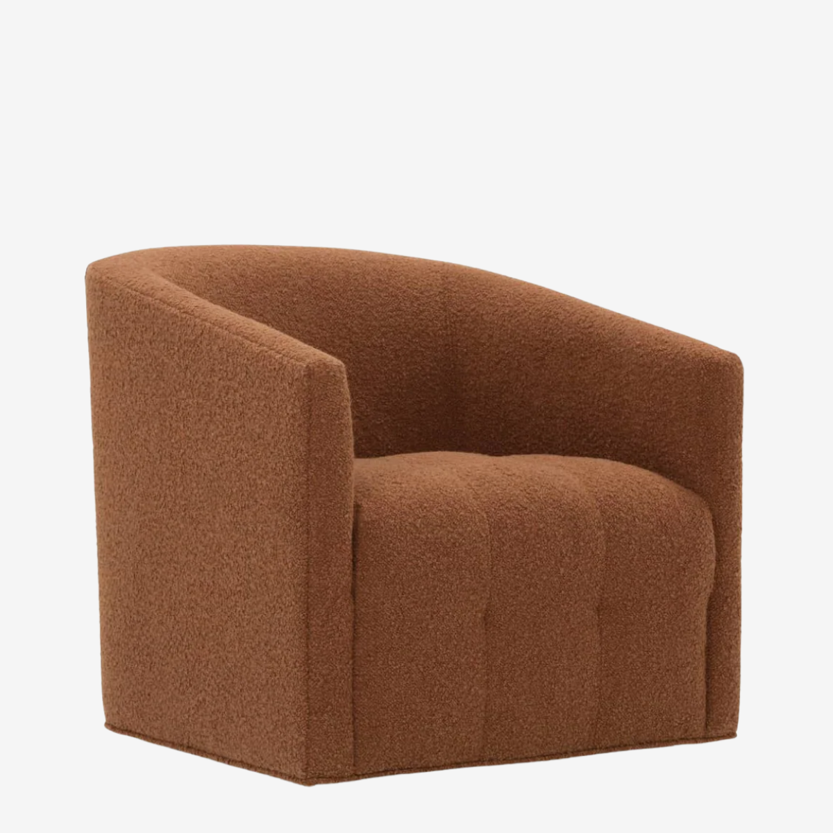 The Pate swivel chair puts a fresh spin on the timeless barrel shape, crafted with care at Rowe's workshop in Virginia.