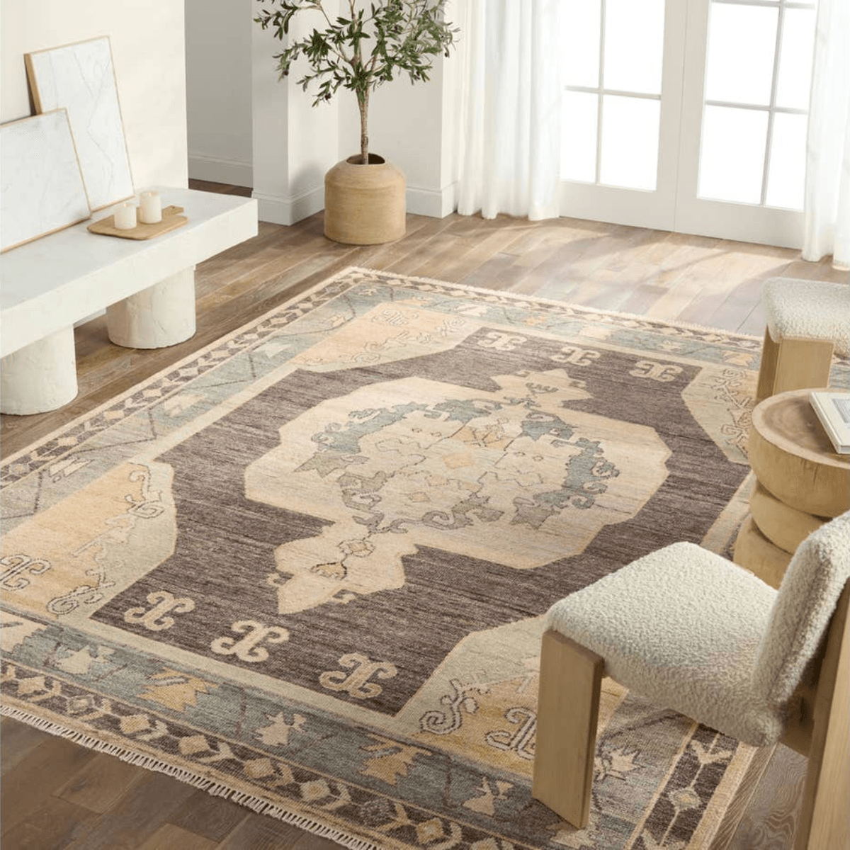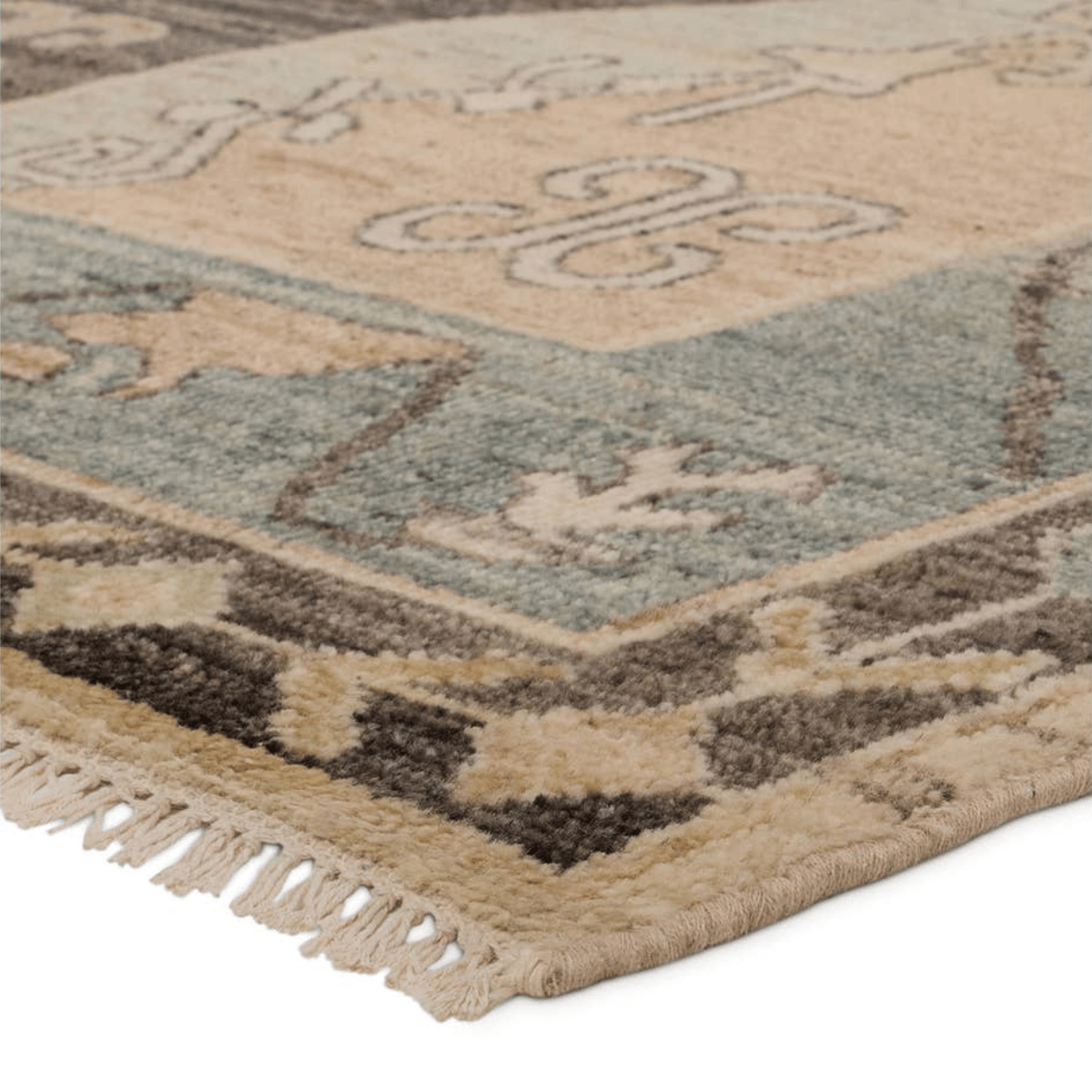 The eye-catching and boldly colored Reza collection features an assortment of Turkish-inspired designs that emulate the unique bazaar finds overseas. These handknotted designs boast a 100% wool construction for heirloom-quality durability. The lively Bhima rug features a medallion and intricate border in hues of charcoal, blue, mint, tan, and cream. The low pile creates an easy-to-clean accent piece that thrives in both high and low-traffic areas of the home.