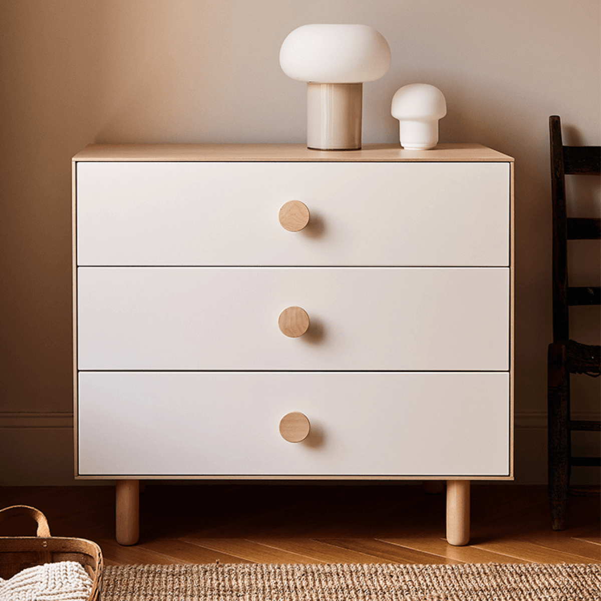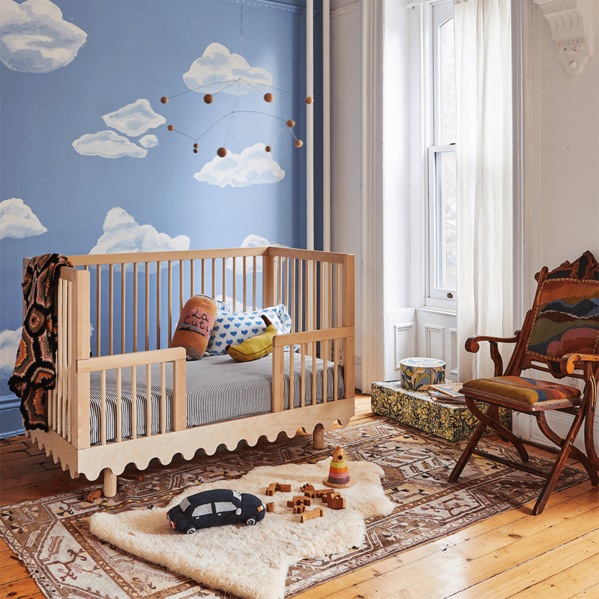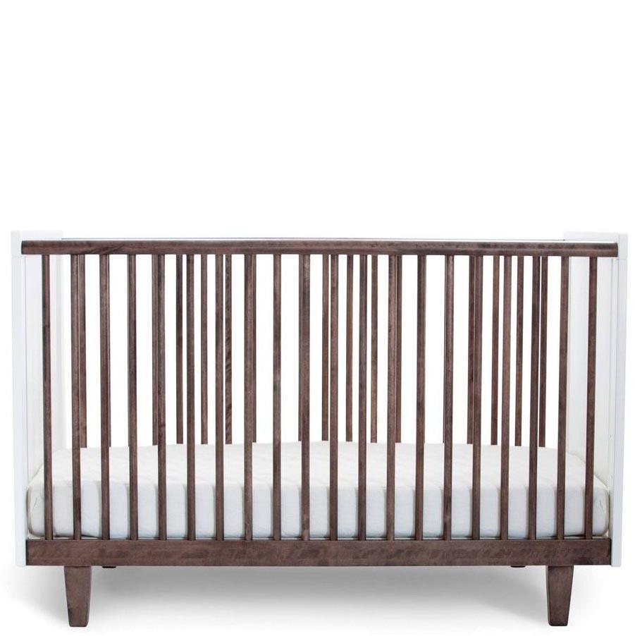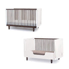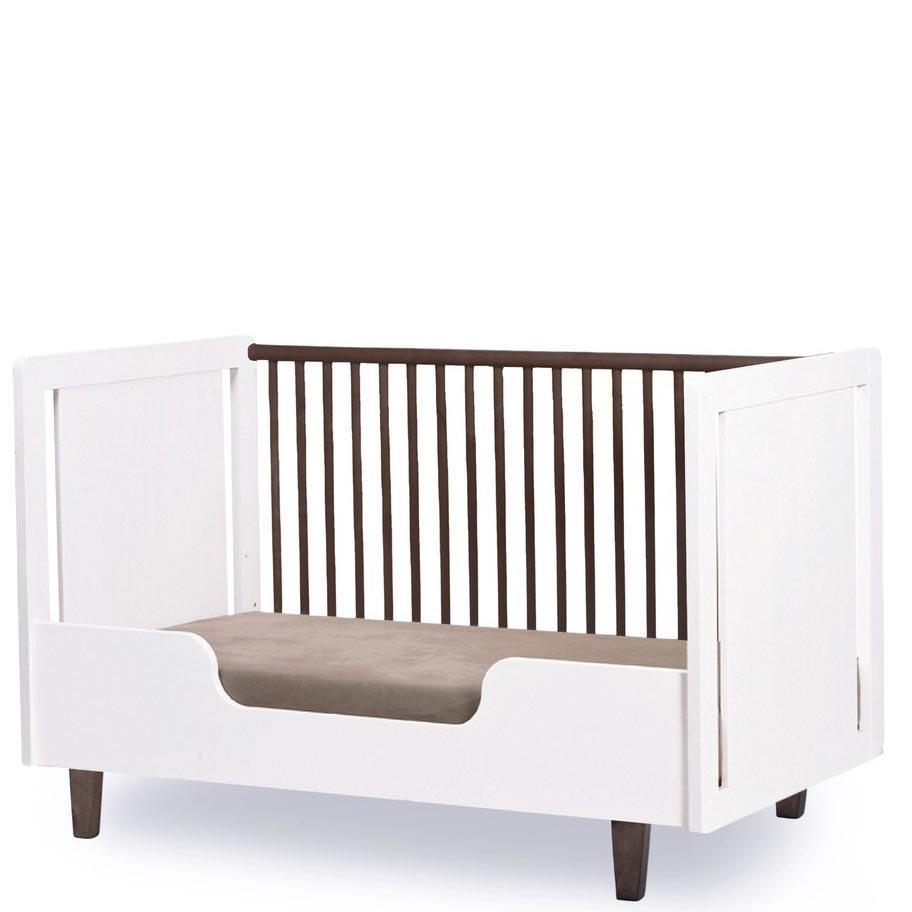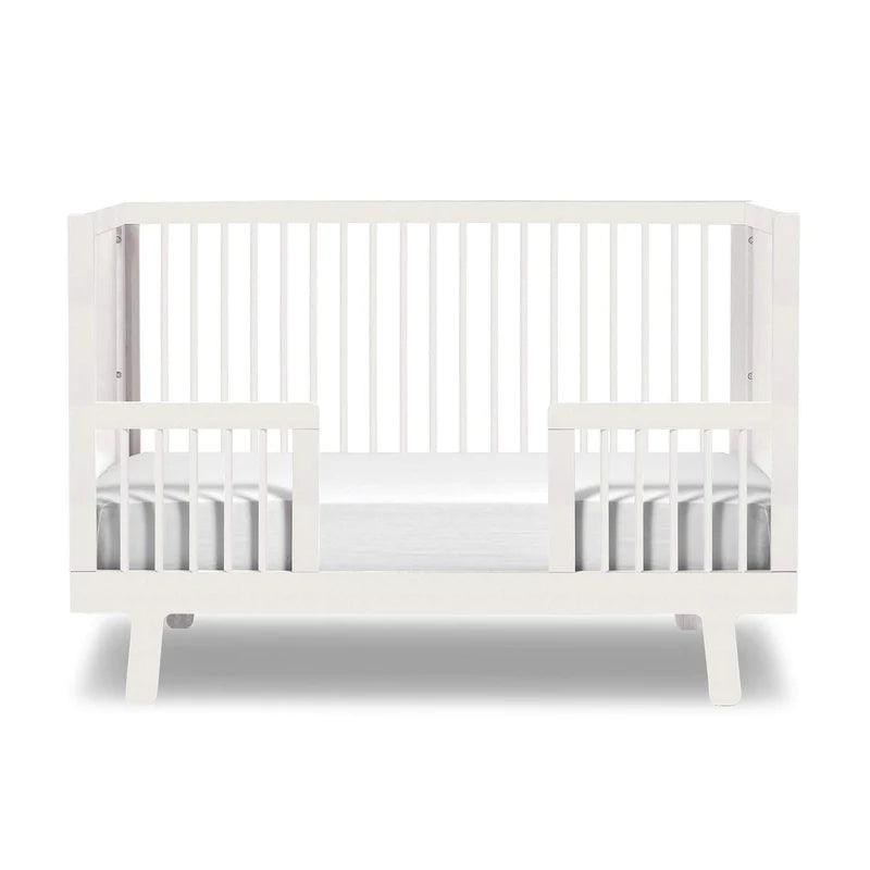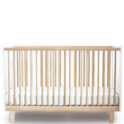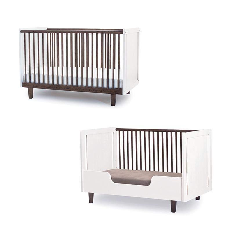 The Rhea crib offers a sleek look and high-quality construction. The warm wood tones and matte white combine beautifully to fit any decor. This crib promotes a healthy sleep environment, made from sustainably sourced woods, and finished with non-toxic, water-born coatings & paint. The conversion kit (sold separately) turns it into a daybed-style toddler bed.