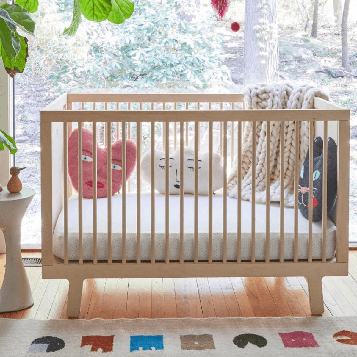 - Fits a standard 28"W x 52"L crib mattress (not included)