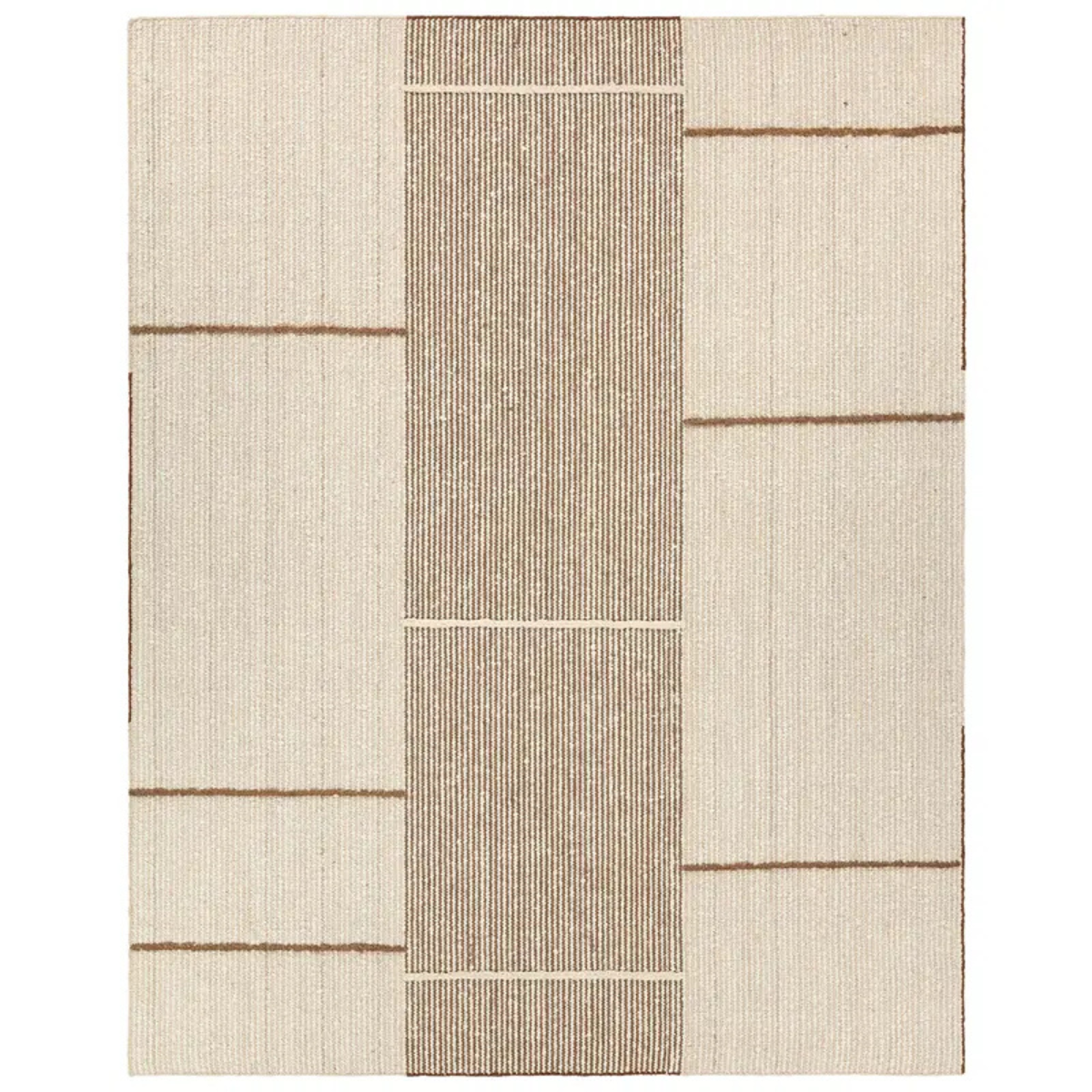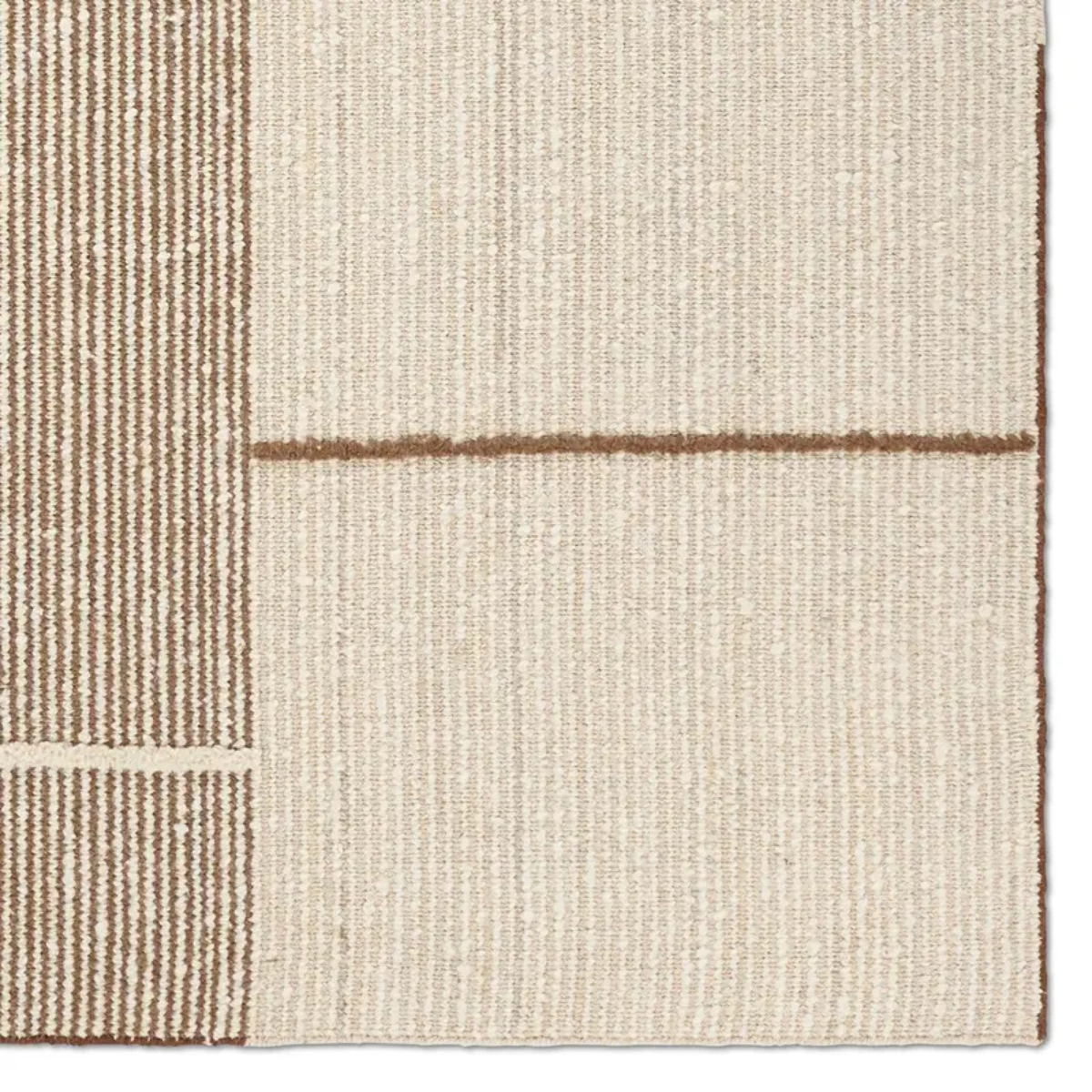 Earthy white and brown tones come together in a mesmerizing linear design, infusing the Bastien rug with contemporary elegance. Hand-knotted from a luxe wool pile, its luminous sheen highlights every intricate detail.