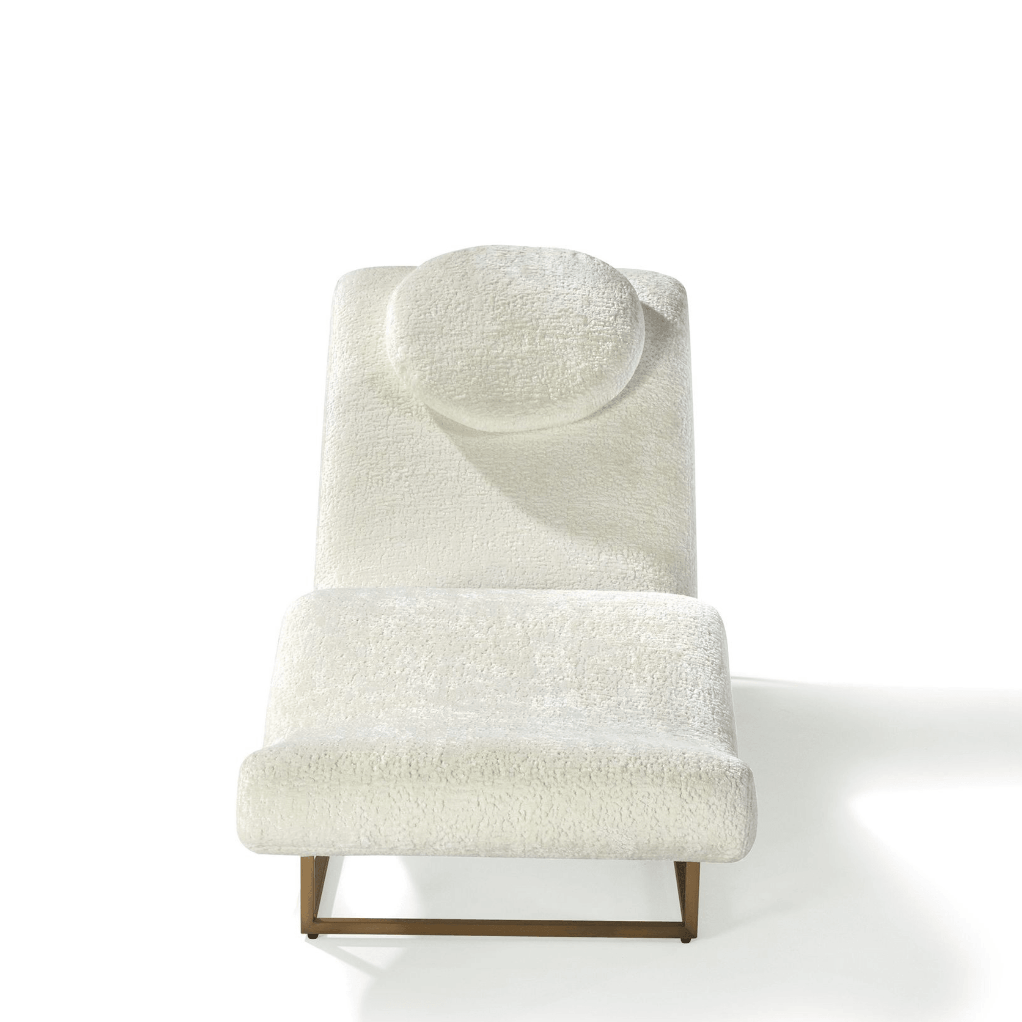 Milo Baughman's design genius shines in the Ripple chaise lounge. This timeless piece, originally conceived in 1966, effortlessly blends midcentury modern aesthetics with contemporary comfort. The thin-line metal frame and crisply tailored upholstery create an elegant silhouette, while the undulating design offers a touch of Hollywood glamour. For upholstery, choose from any of our curated fabrics or leather options or provide your own for a personalized touch.