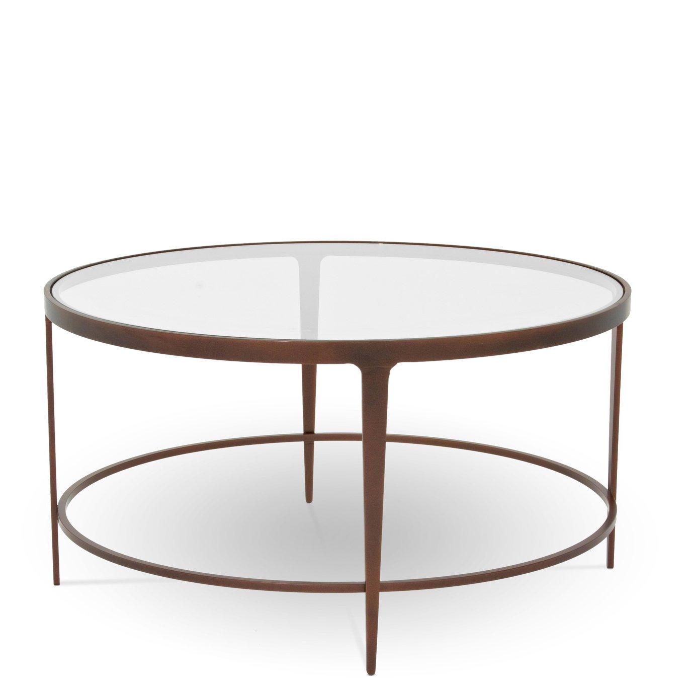 Our Roundabout Cocktail Table has a round Glass top that is elegantly supported by sleek tapered legs.