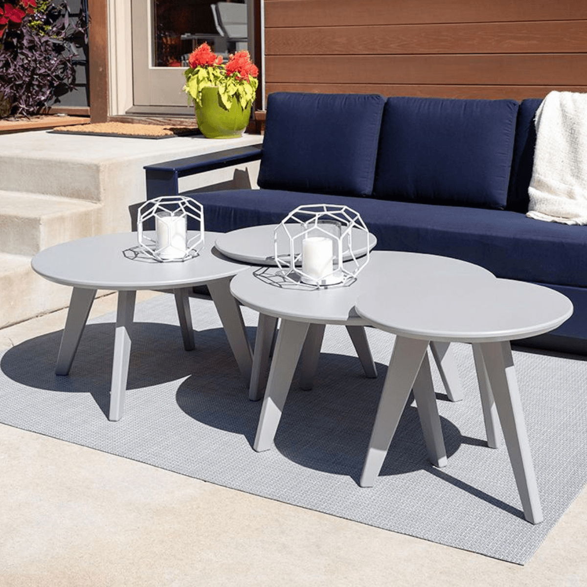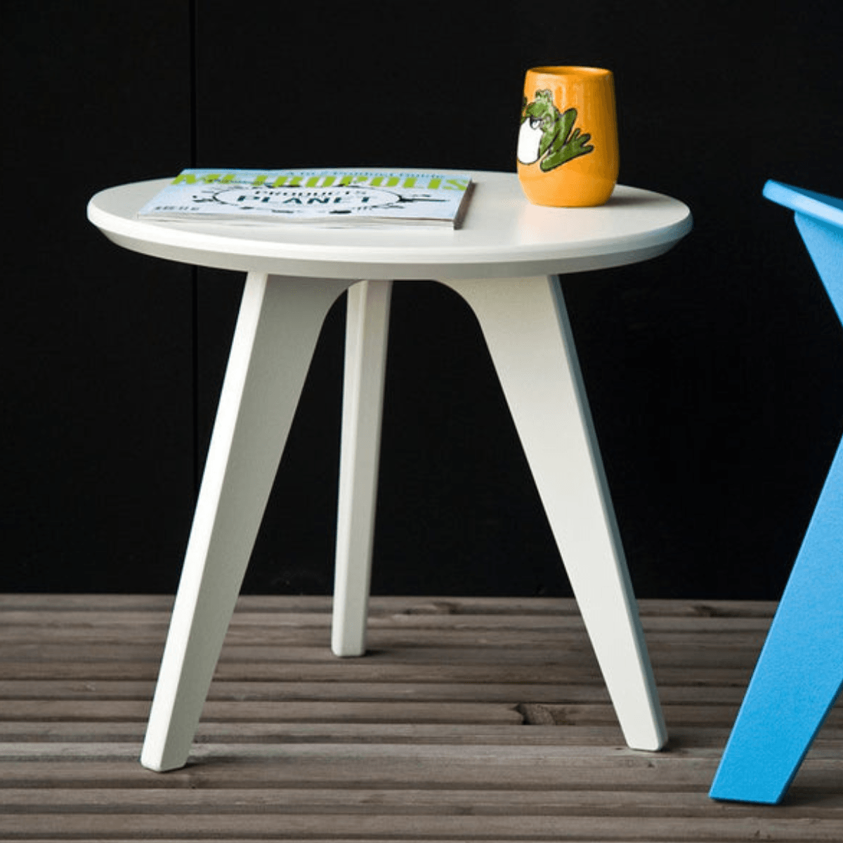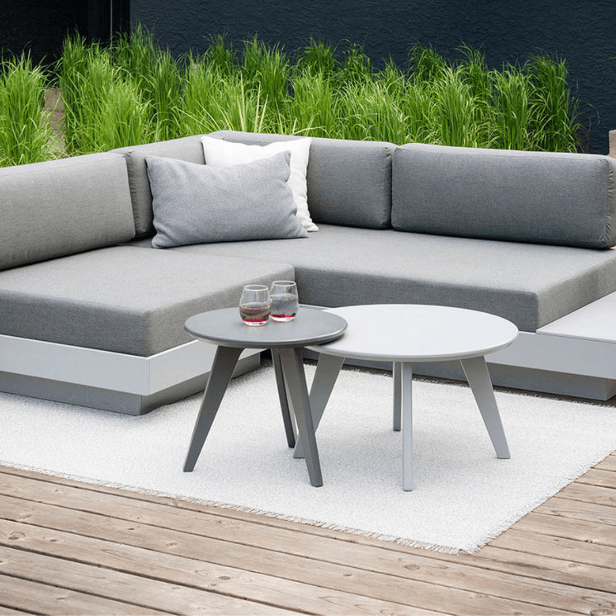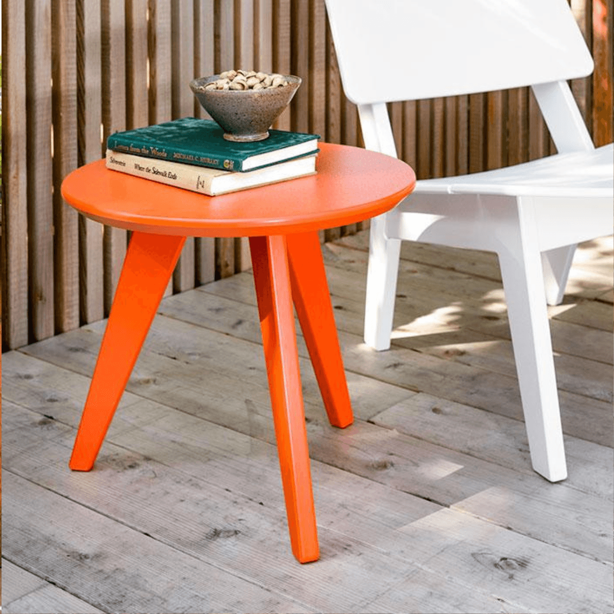 Part of Loll’s Satellite Collection, this round outdoor end table measures 18 inches around the tabletop. Perfect for outdoor entertaining, the modern side table also comes in a larger, 26-inch version.