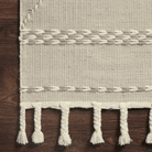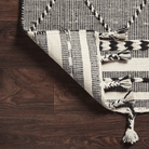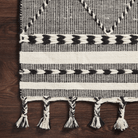 Hand-loomed of wool, cotton and other fibers in India, the Sawyer Collection features bold graphic designs. Textural, tonal, and timeless, Sawyer evokes a sense of unique sophistication. Plus, each piece is finished with a playful fringe.