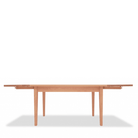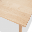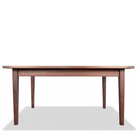 The Shaker Harvest Dining Table is available in Natural Cherry, Maple, or Walnut hardwood. Features include four-side tapered legs and optional breadboard ends. Two 18" breadboard end leaves can be added to any size table.